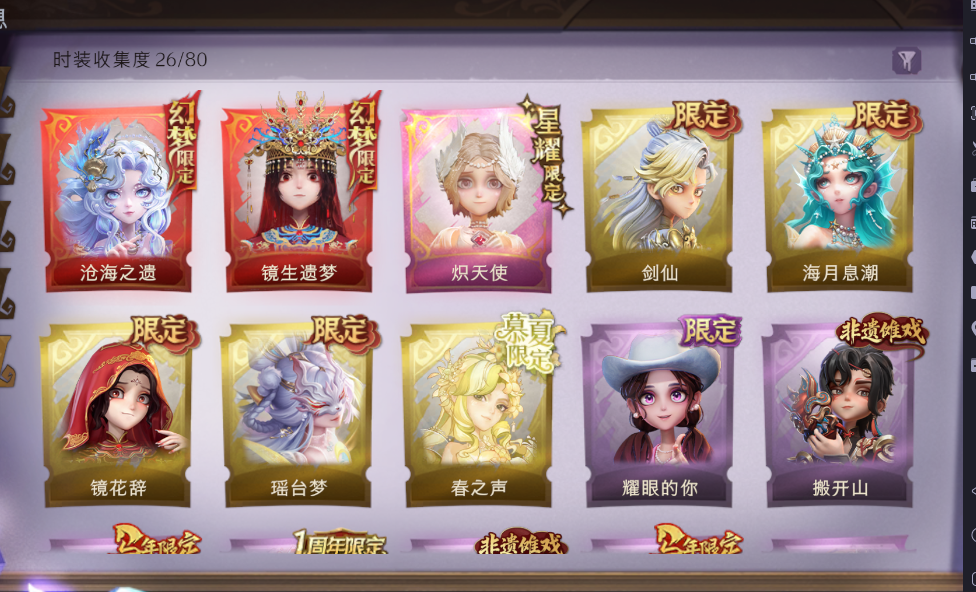 沧海之遗♥2红♥炽天使氪3.9k♥6紫♥瑶台梦♥绮想花园♥晶澜灵翼♥剑仙♥5金皮♥10紫