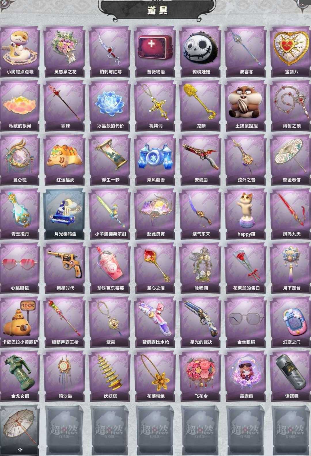 无二级密⭐1粉5金13紫◆炽天使瑶台梦莉莉全皮三美妆双车皮◆圣光之谕莲华渡渡鸦公爵◆小羊剑露比水枪