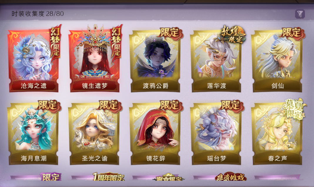 沧海之遗♥2红♥春之声♥氪5k♥绮想花园♥剑仙♥8金皮♥瑶台梦♥8紫