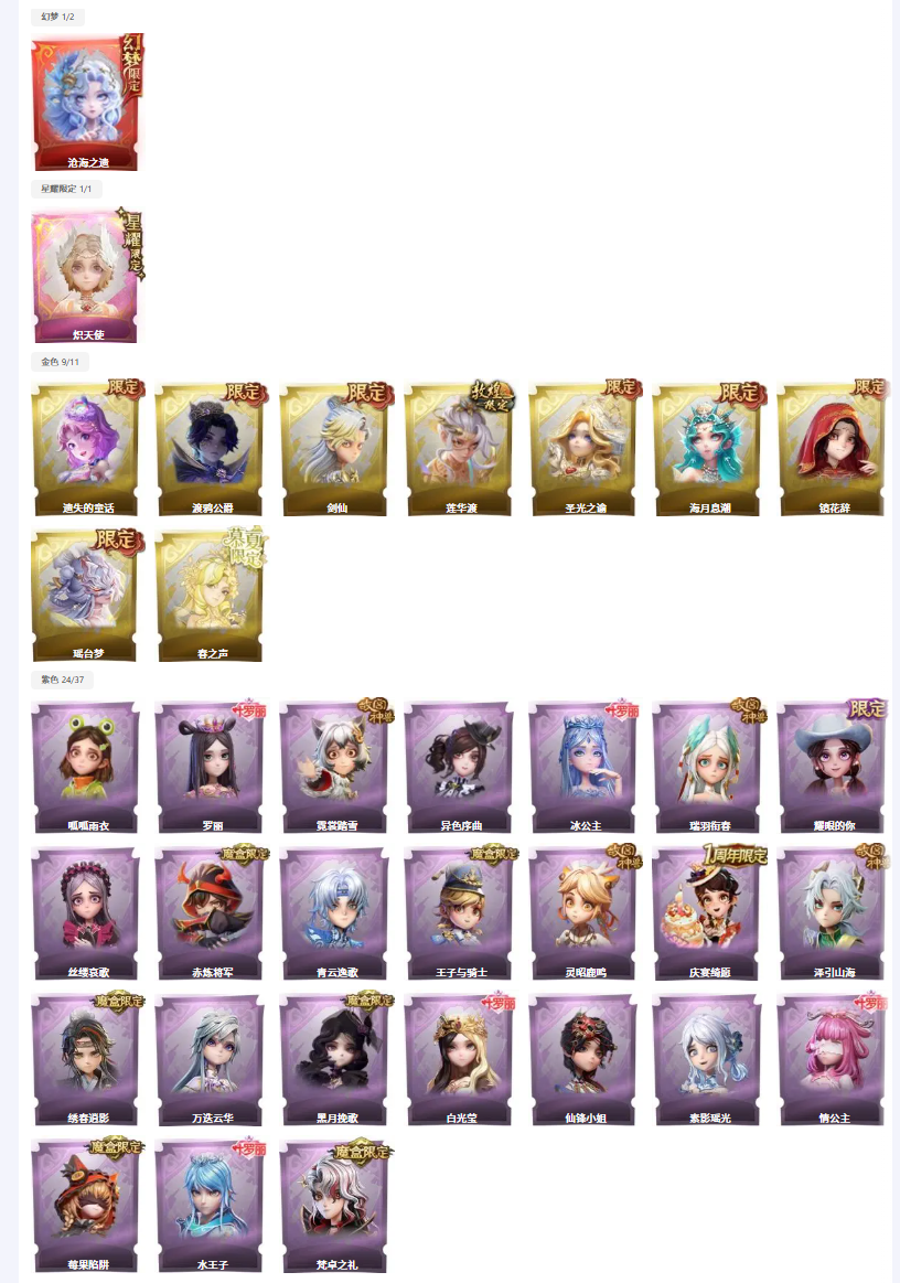 满图鉴✨话痨剑✨2红9金24紫✨非遗皮沧海之遗✨剑仙✨莲华渡✨瑶台梦✨渡鸦✨春之声✨赤炼将军✨泽引山
