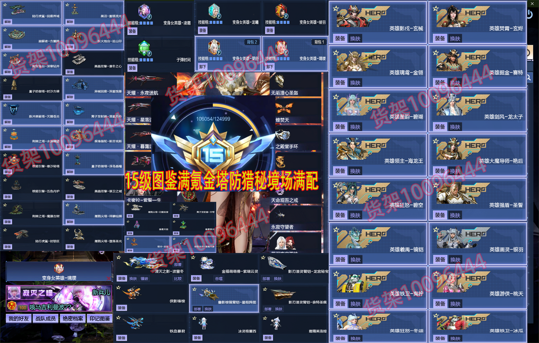 15级印记✨天命莱娜71关70爆965璃璎蓝羽双姝冰精灵✨玄烬械四臂㊺光焰甲涅槃女王金蛇霜霆天耀套