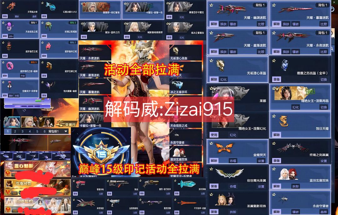 装备描述:解码、预约看图,下架代表在出租⭐15级印记双红7金能量再生悬停高度260⭐️收藏老号全模式畅玩,武器套装皮肤齐全59页皮肤29翅膀36戒指⭐背包一pve 背包二pvp ⭐养号不易,老板们请不要随意毁号,严禁卖武装战术,有不懂的可随时滴滴号主,喜欢记得收藏,祝老板们玩的开心~