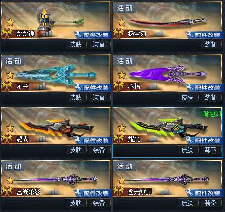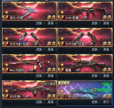 装备描述:广陵二幽冥234玄天14幻锋满耀光满x2,无限屠魔影魔,蝴蝶刀,藏锋124猩红123双含光双不朽双水晶