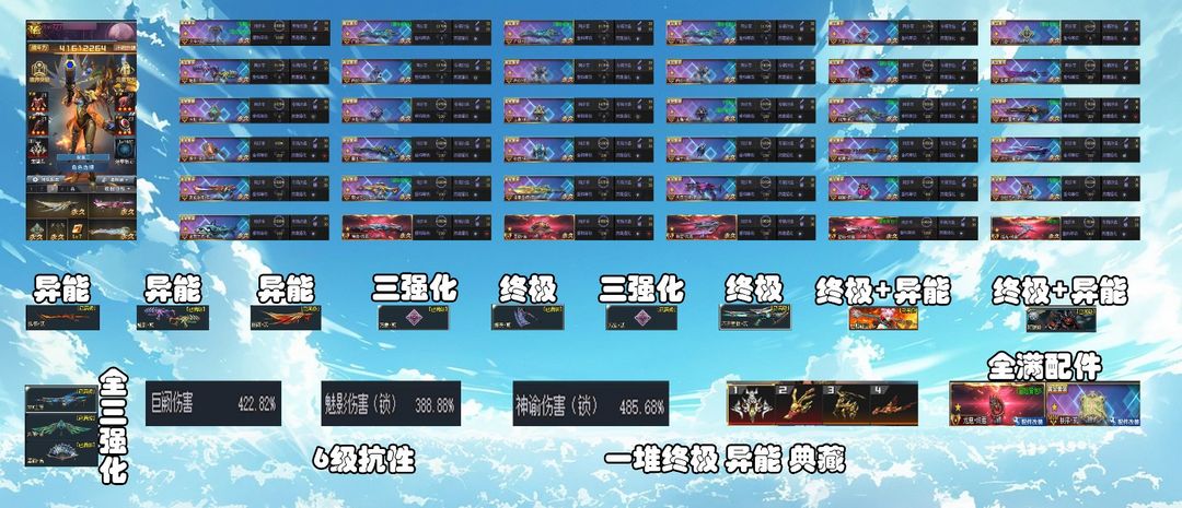 装备描述:配件✨巫灵丨渊瞳丨星斗丨天际丨寂灭丨破魂丨岚翼丨乾坤丨海神之怒丨美杜莎之吻丨棱晶丨赤血之源丨焚风丨鬼刃修罗 x2丨奏鸣丨藤木蔓芯丨幻宇星涡 x2丨创世星环丨闪击丨尘埃丨幽冥 x2丨玄天丨末世丨弧光丨无踪 x2丨黑炎丨连城 x2丨跳跳锤 x2丨核子裂变 丨迷你派拉 x2丨裂隙行者 x3丨帝王战锤 x2丨终末之弩丨伏虎丨灵狩丨原石之力丨獠牙丨含光承影 x2丨幻影侍卫丨虚空漫游丨戏法幻刃 x3丨虚空之矛 丨仲裁巨剑 x2丨 彩金✨丨天平贰丨晶刹贰丨巨阙贰丨秩序贰丨广陵贰 x4丨万象贰 x3丨魅影贰 x2丨两仪贰 x3丨飞梭贰丨纵横贰丨天枢贰 x2丨玉衡贰 x2丨风神贰丨不灭星核贰丨撼天贰丨塞壬贰丨锁宙贰丨镇宇贰丨蛇舞贰丨次元之星贰丨裁决之炎贰丨涤罪圣辉贰丨磁暴贰丨黯水晶-绝贰 x3丨封印魔典贰丨 传说✨瑶光终焉丨星珀终焉丨神谕终焉丨墨韵合丨神谕终焉丨龙息终焉丨无限EX丨碎星终焉丨雷神终焉丨无尽光影终焉 x4丨SCAR-影魔丨RPK主宰丨AK47主宰丨屠魔丨 其他✨蝶舞丨浪漫花束 x3丨迷你液氮发生器丨低装药C4丨灰核贰丨激素贰丨冰河 x2丨妙笔极丨摇摇乐丨无极极 道具✨变异血清丨弹匣丨 皮肤