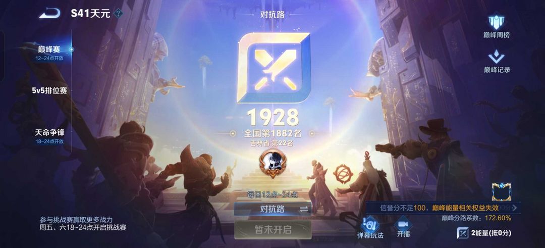 高危只能娱乐⚡对抗巅峰万强1928闪电框4000名⚡在榜64段打野省对抗省夏洛特狂铁司空震⚡禁巅峰