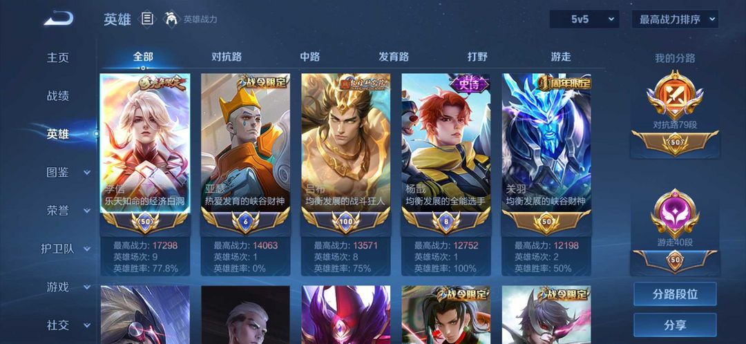 在榜国服打野78段」巅峰开,市级关羽,市级李信 可排位❤国标吕布李信❤包天低价
