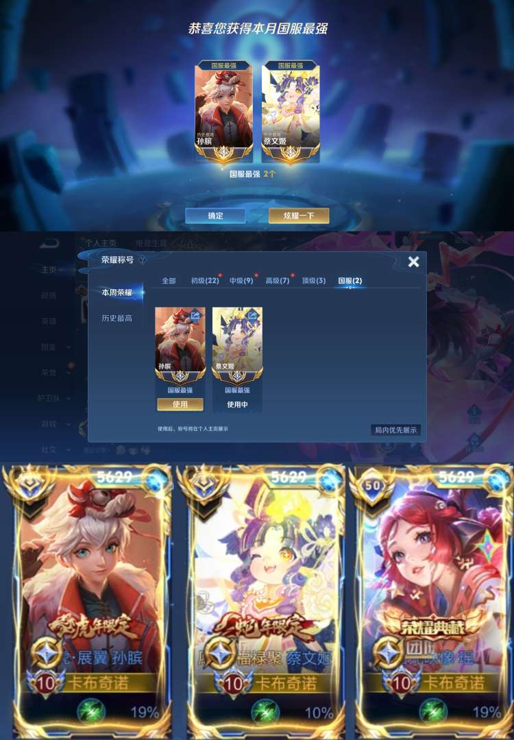巅峰万强闪电框❤️12月在榜双大国服蔡文姬|大国服孙膑|小国标瑶❤️禁打巅峰❤️富婆漂亮号