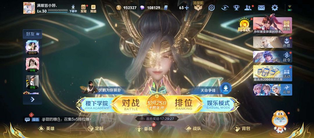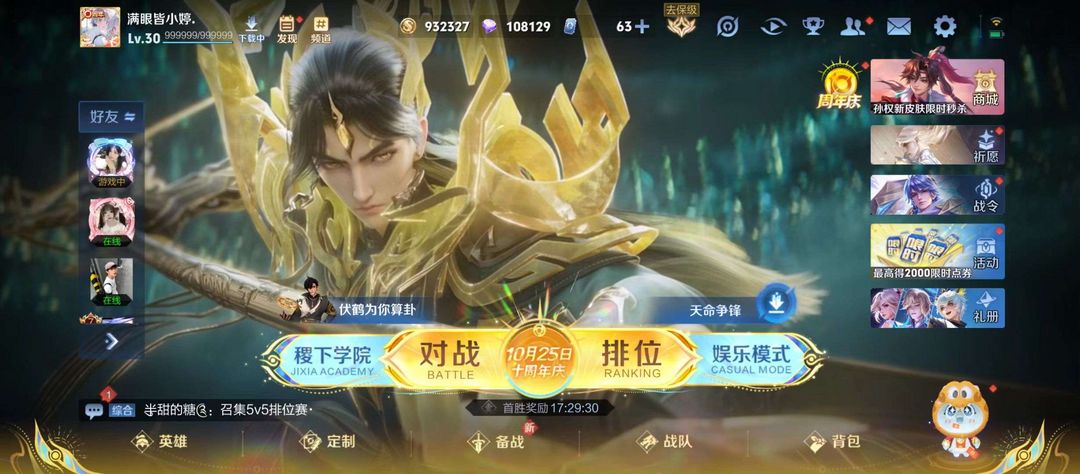 游戏区服:王者荣耀-QQ安卓-QQ账号
