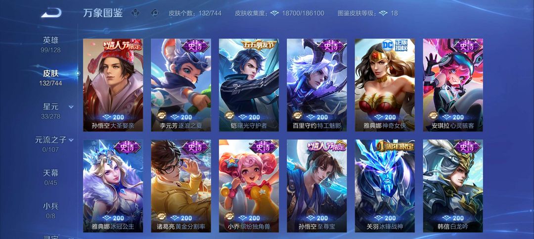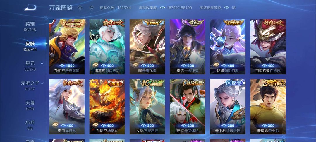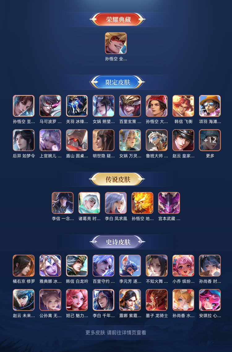 全息碎影,凤求凰,白虎志,冰锋战神,一念神魔,云鹰飞将,时雨天司等皮肤