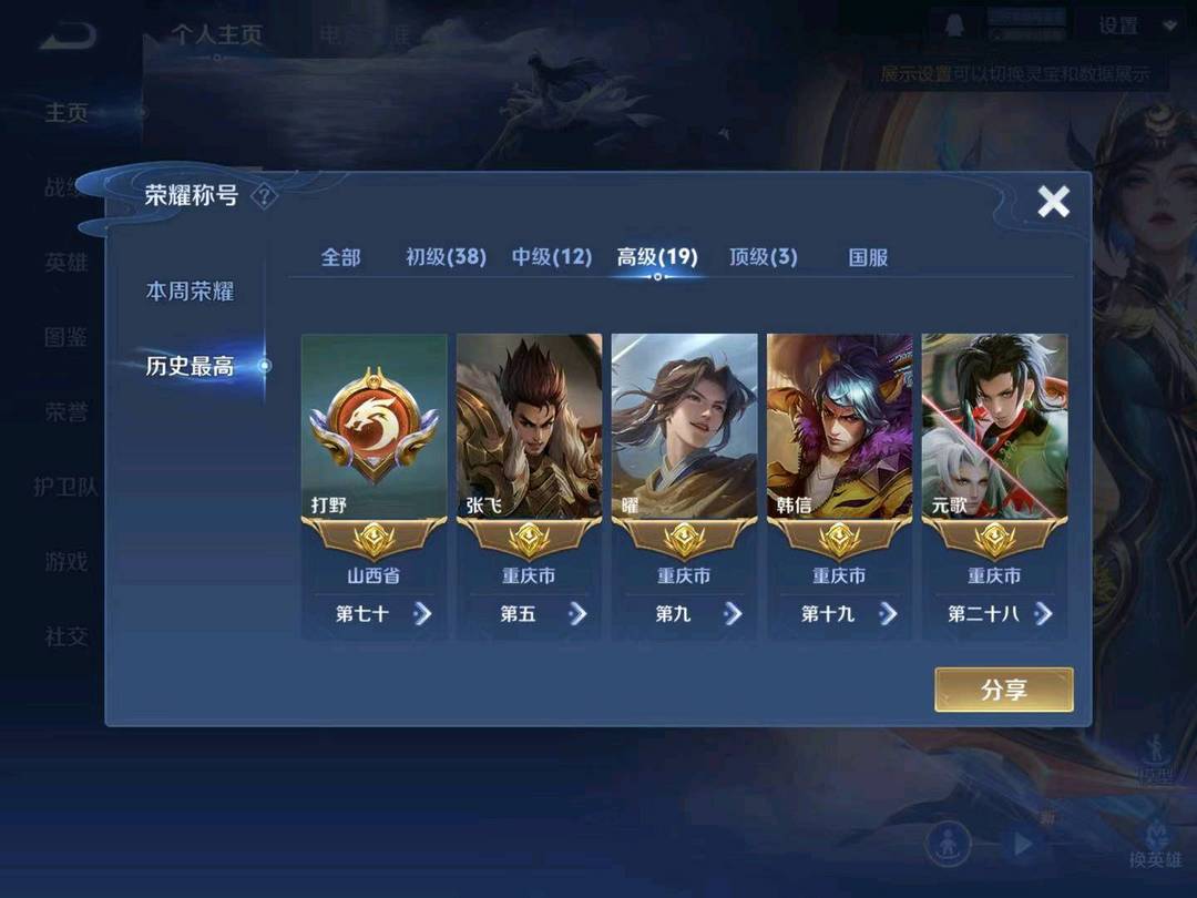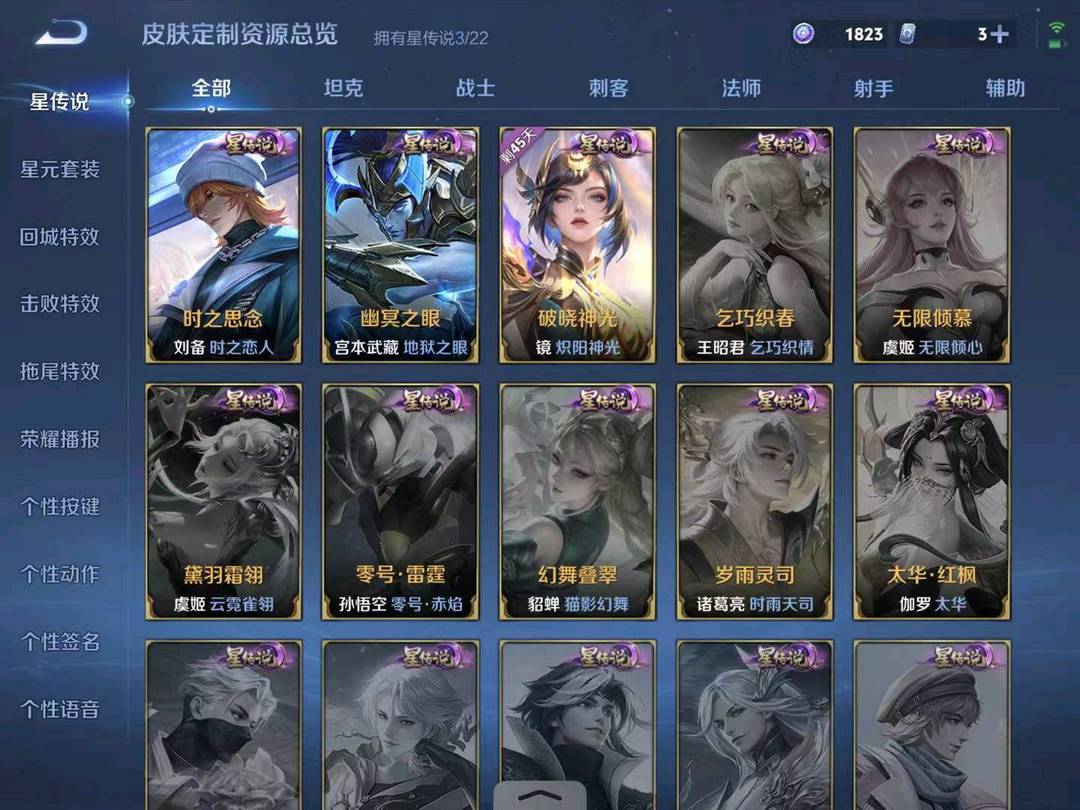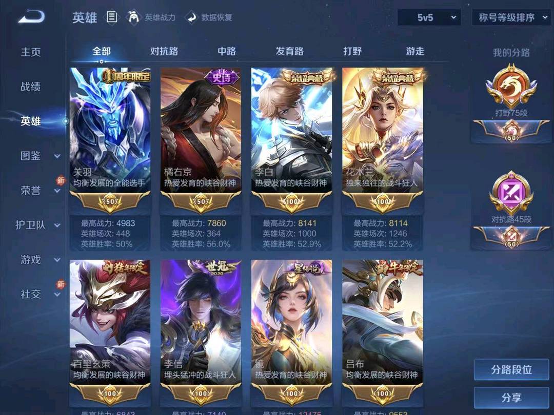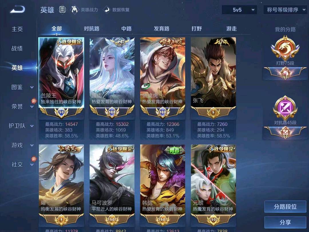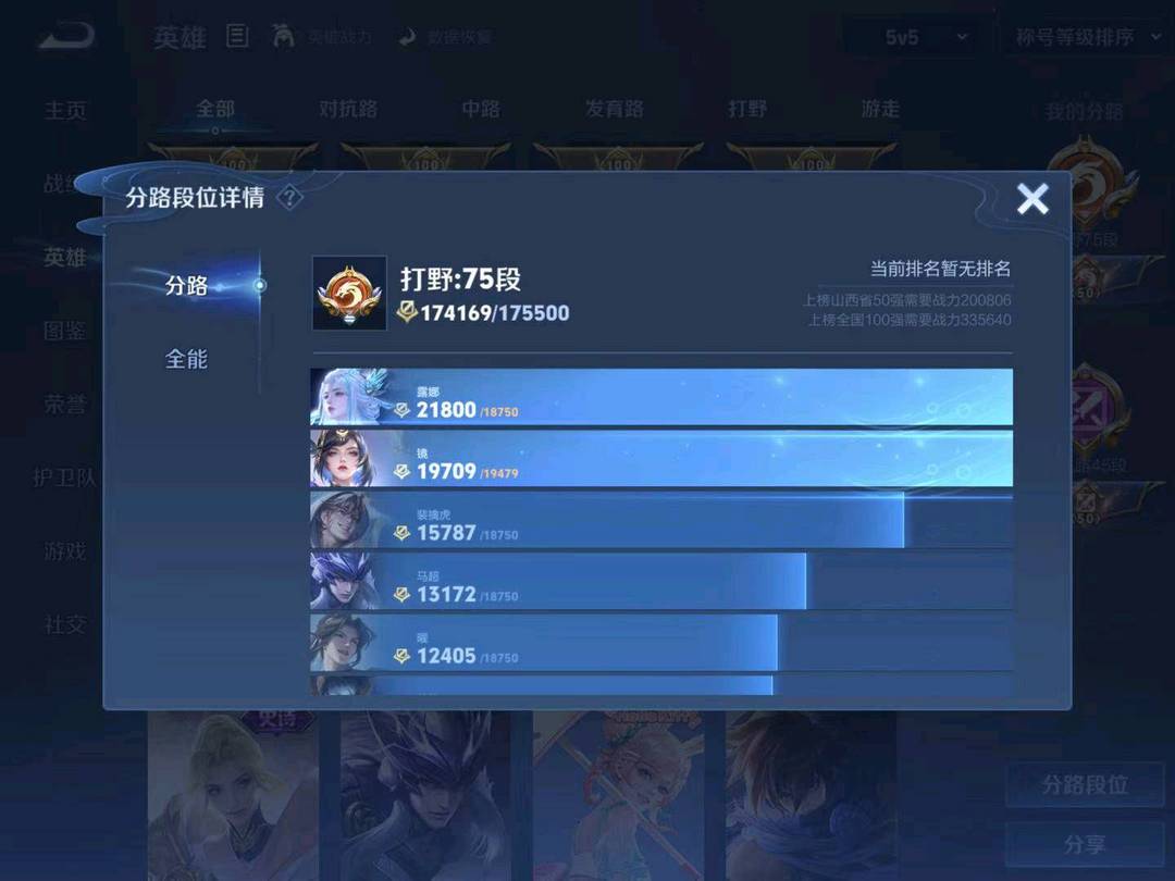 75段打野历史3小国18金标/1.5w小国标露娜国服/小国标老虎国服/小国标兰陵王国服/万战镜曜韩信