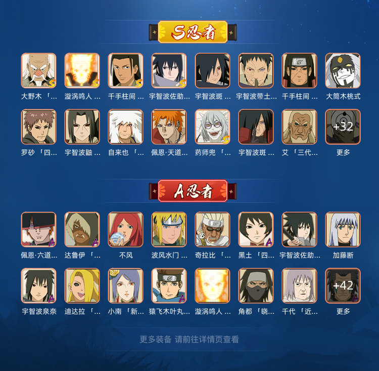 限制: 撤单率<10%才可租用此帐号装备描述:妖怪纲手已秒 漂泊带土 漂泊小南[3500万战力]54全S 85A 400忍者 漂泊佩恩