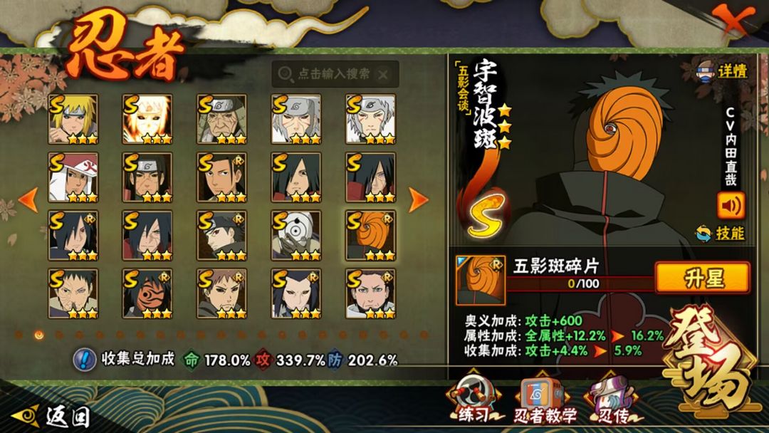 忍者数400+★全忍者★全通灵★54S★3500万★漂泊带土★须佐卡卡西★三代风影★漂泊小南