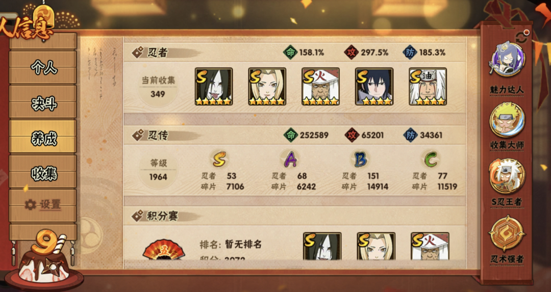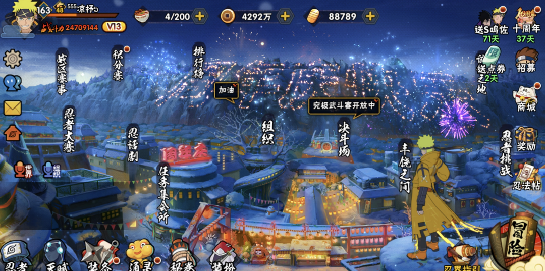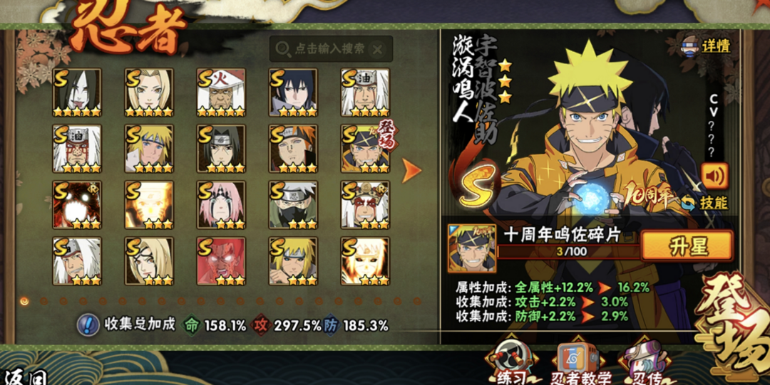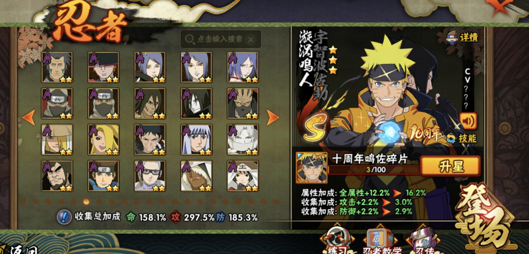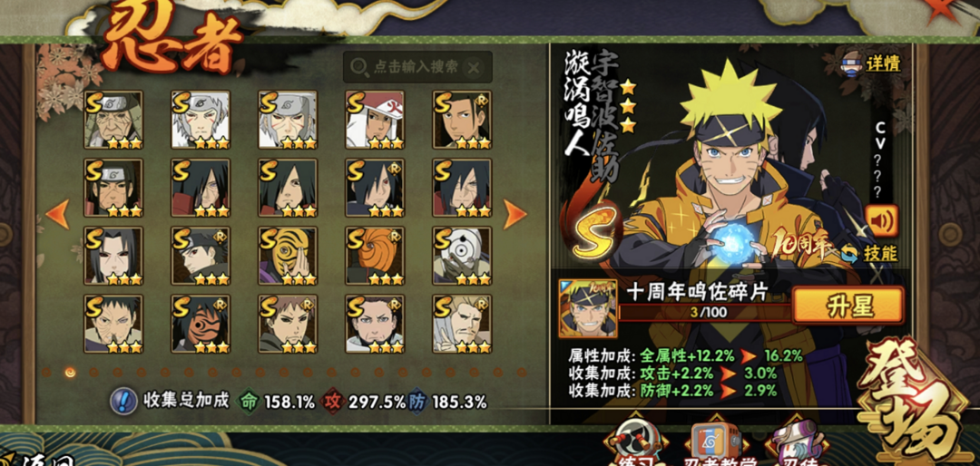 2400战力53S✨五影斑十周年鸣佐暴怒六尾九喇嘛水门鸣人✨忍战红夜漂泊带土舍人佩恩天道全高招点卷A