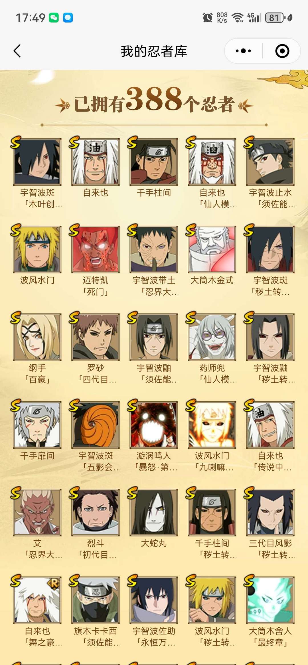 五影面具男⭐️漂泊带土皮肤⭐️全S全高招A全点卷桀骜之刃⭐️3080万团本车头全通灵奥义满配