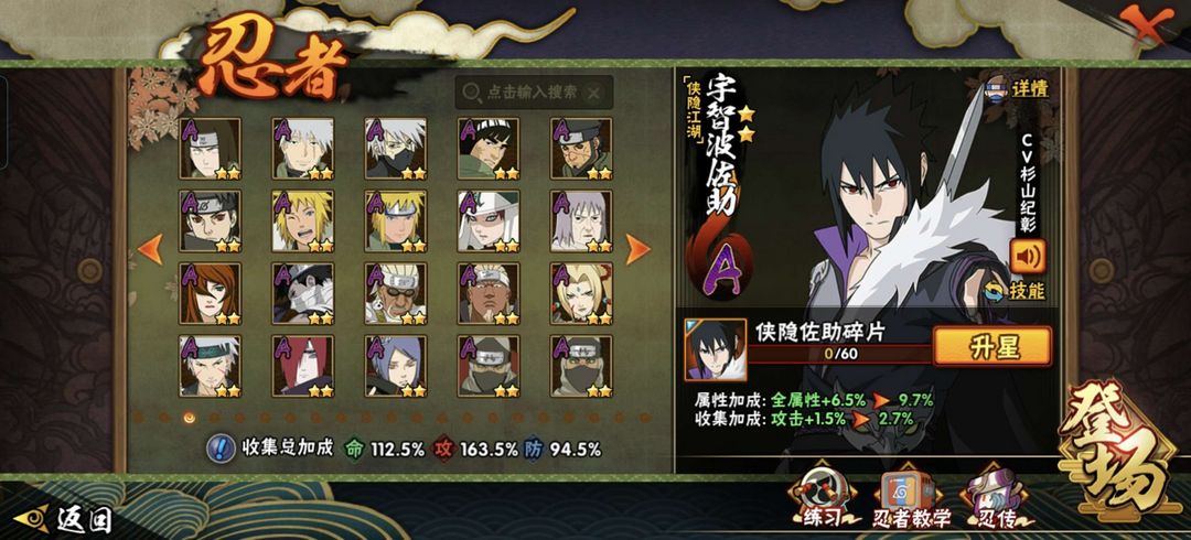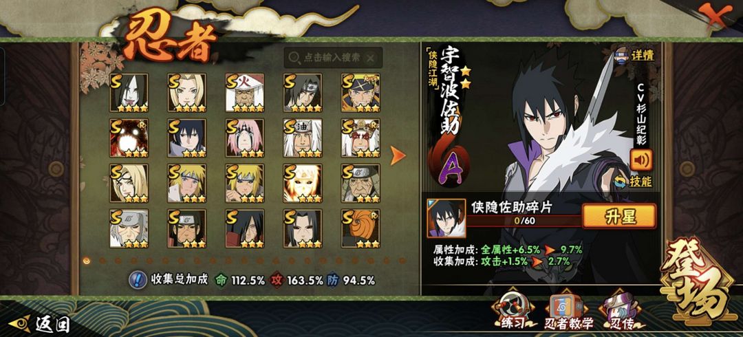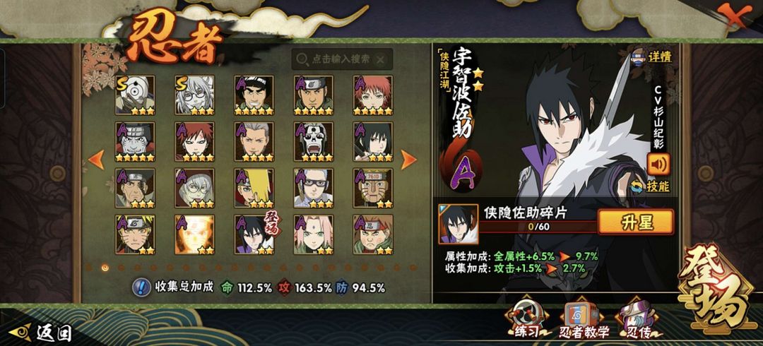 装备描述:22S/47A/212,五影带土妖怪纲手,仙人巳月,侠隐佐助,机械鸣人,暴怒六尾鸣人,秽土再不斩,泳装黑土,须佐佐助,秽土鼬,白面具,秽土水门,秽土柱间