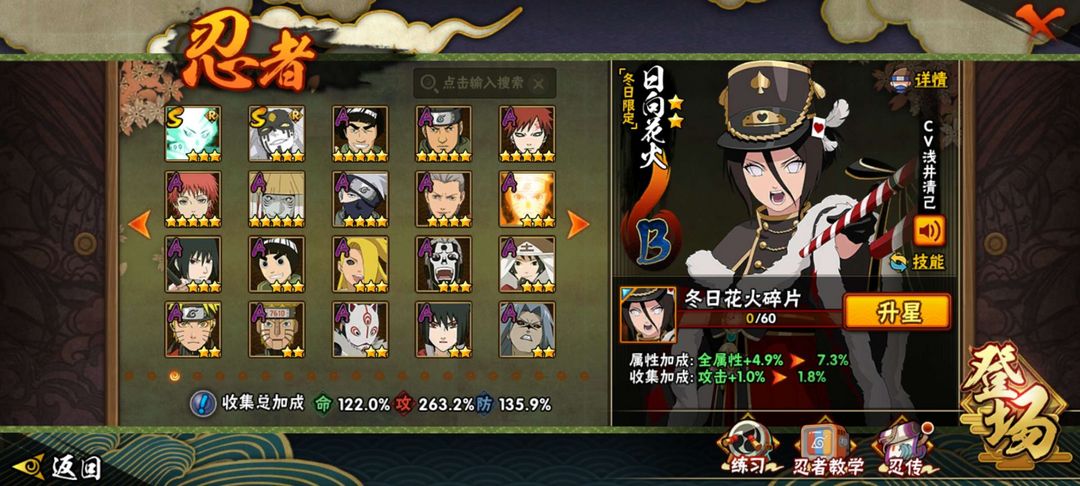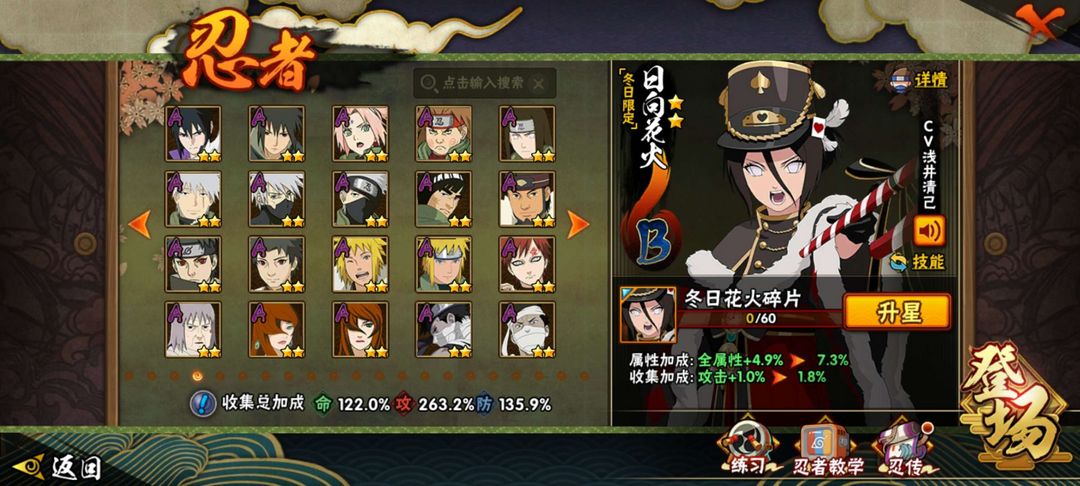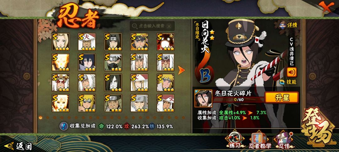 多S和A忍者 可打排位 多娱乐忍者 少量冬日夏日忍者有高人气漂泊忍者