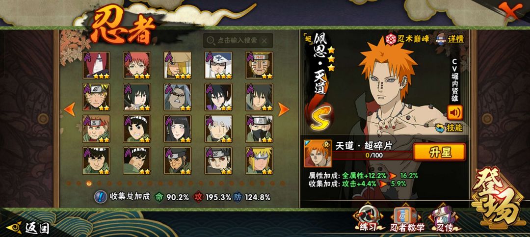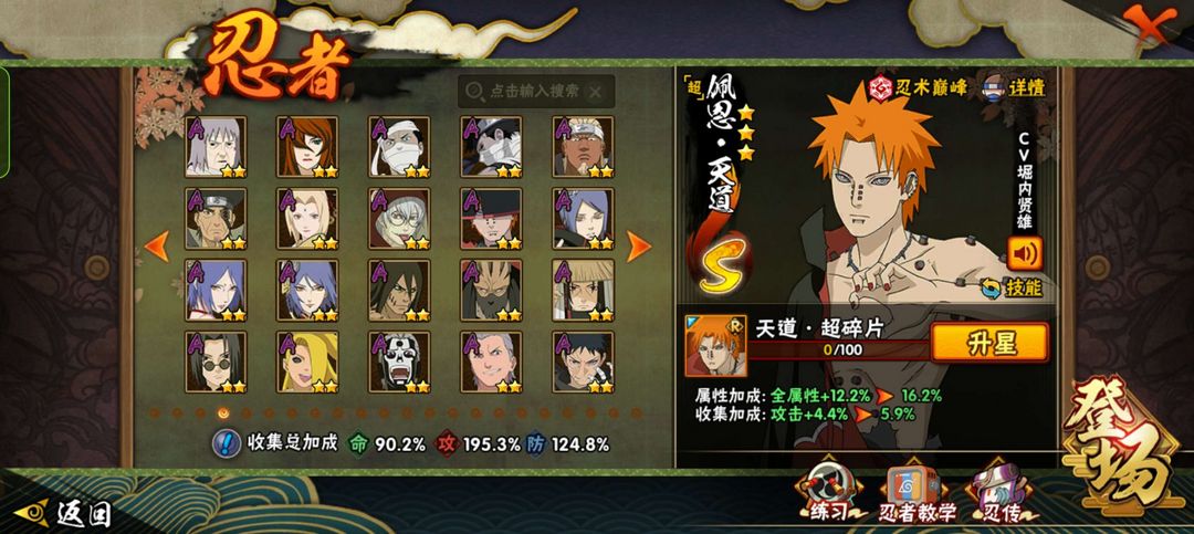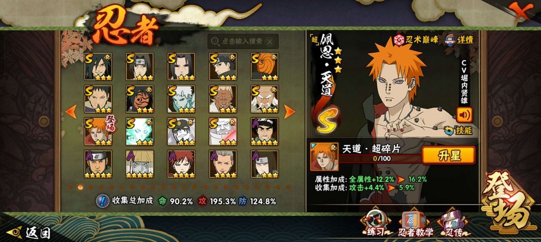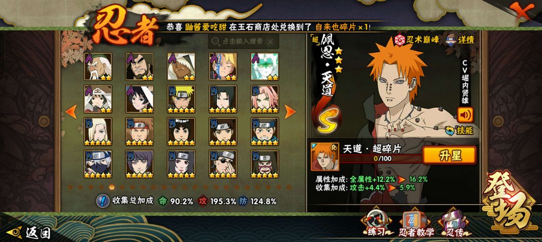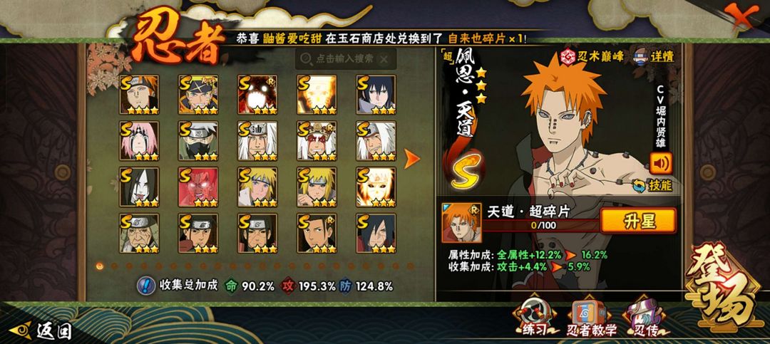 装备描述:34s53a热门高强度忍者都有,漂泊忍者除了二代都有,有熊猫螃蟹蛞蝓