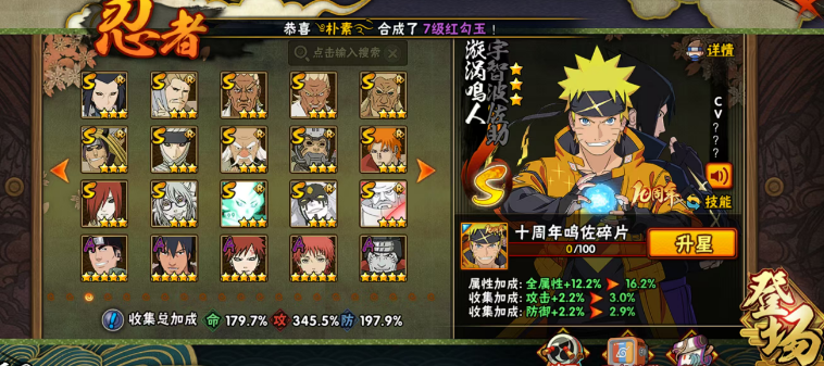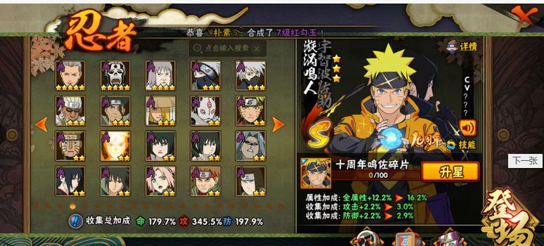 401忍者全S3200万战力✨五影会谈斑九喇嘛水门鸣人✨巳月创立秽土斑红夜忍战带土死门凯全点券高招A