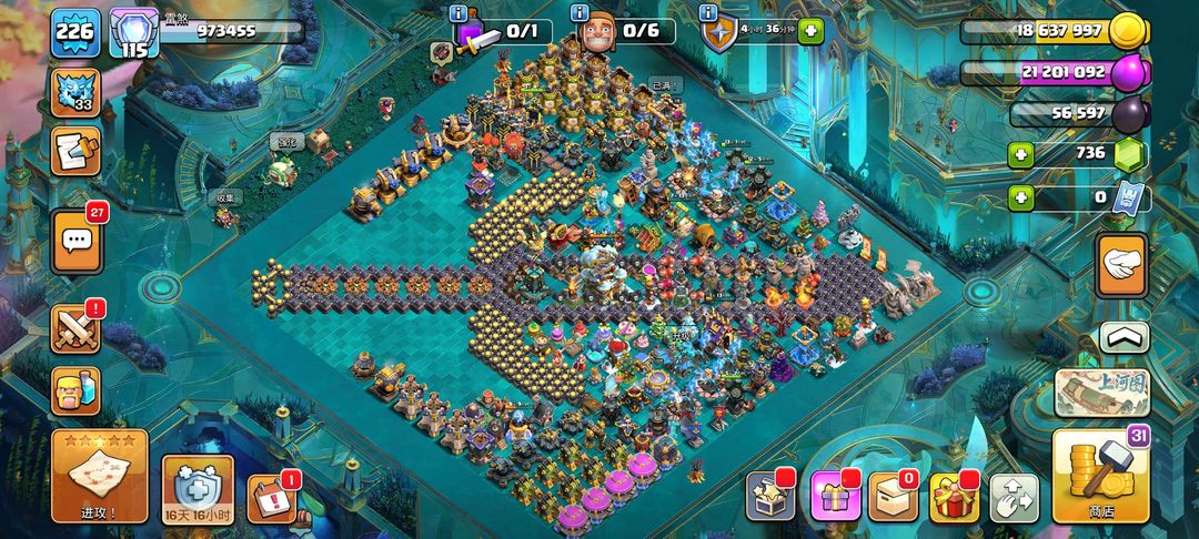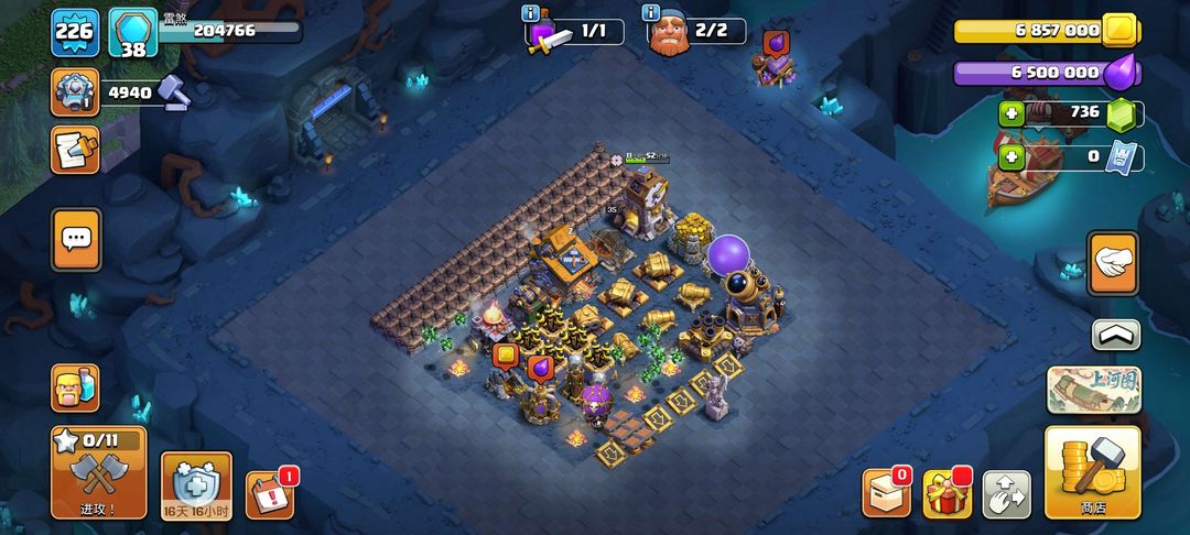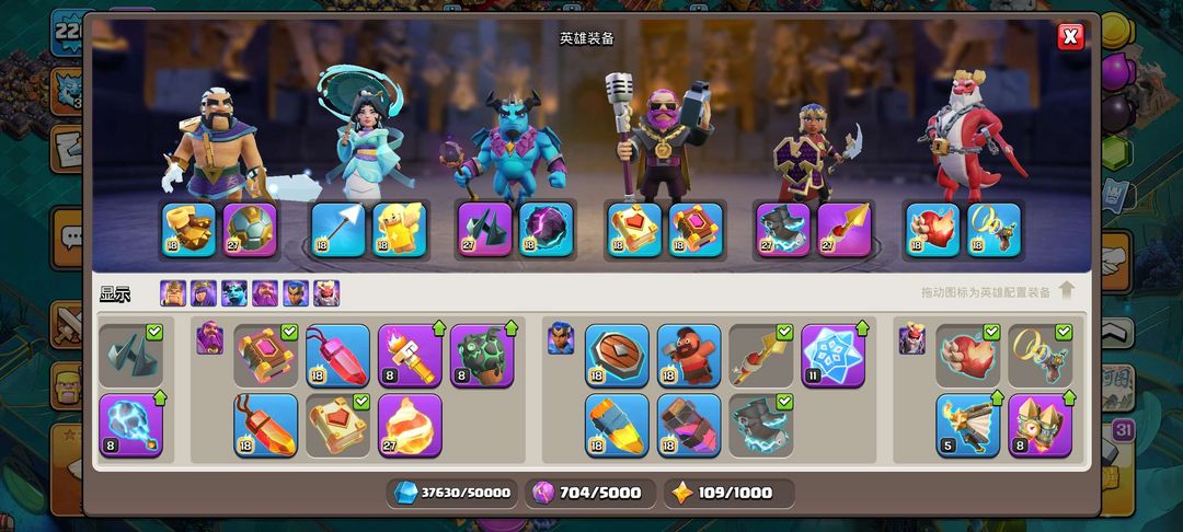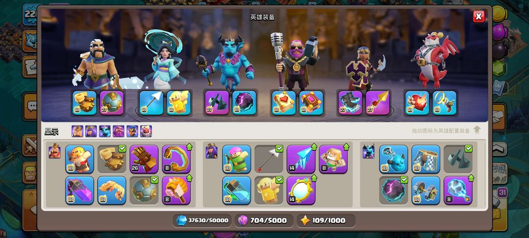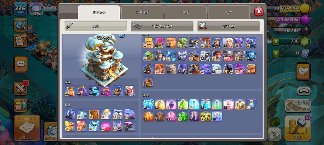 18级大本营,英雄、兵种、法术、战宠全部解锁且几乎满级,夜世界全满