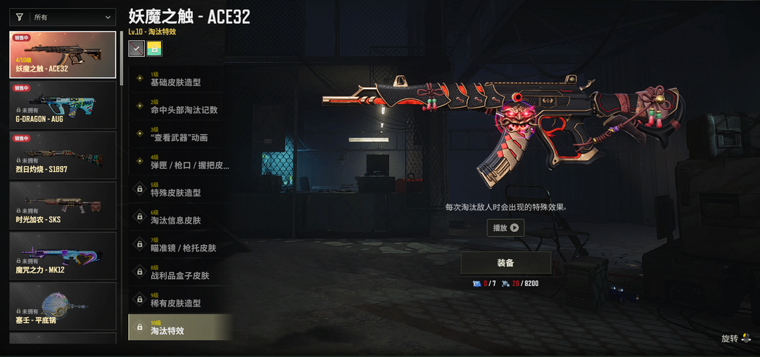 ④级妖魔之触ACE✅黄道猎手M4✅鲜花之力AKM✅暗黑断罪之剑✅十字军SKS✅