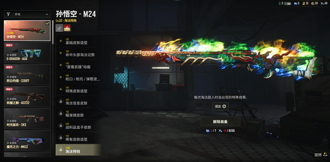 ⑤级孙悟空M24✅彩虹蛋糕M4✅破碎元素AKM✅魔力宝贝SLR✅十字军SKS✅鎏金王朝98K✅猪八戒