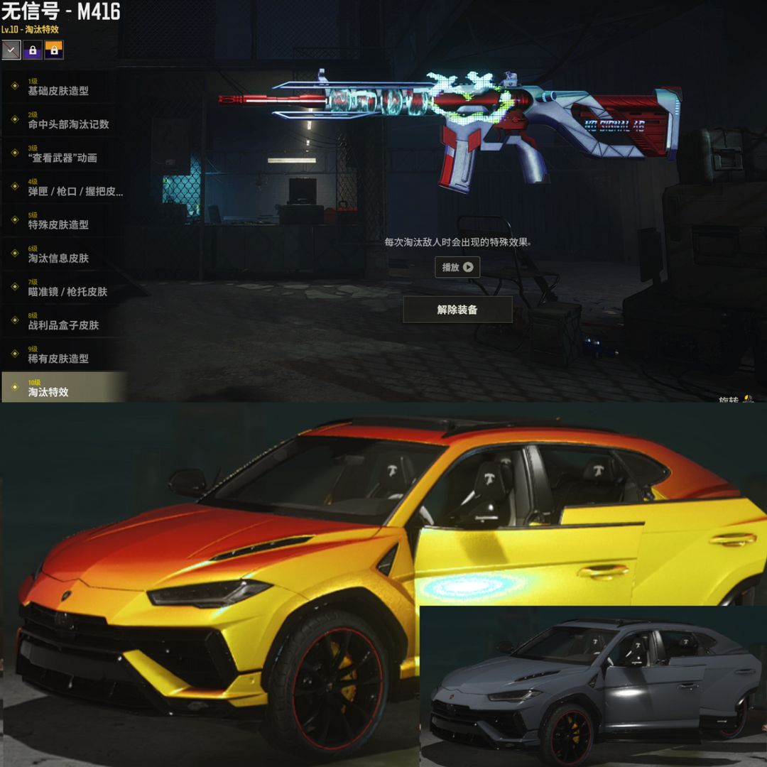 ⑩级无信号M416可排⚛️豪华金灰兰博基尼SUV①异色烈日S1897老黑金面
