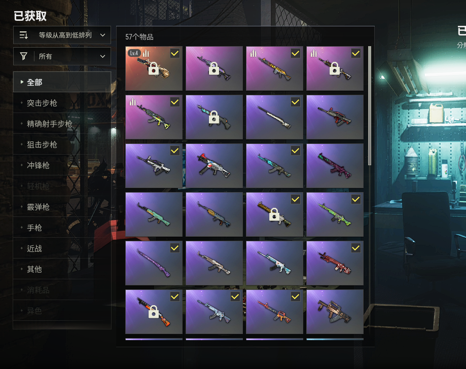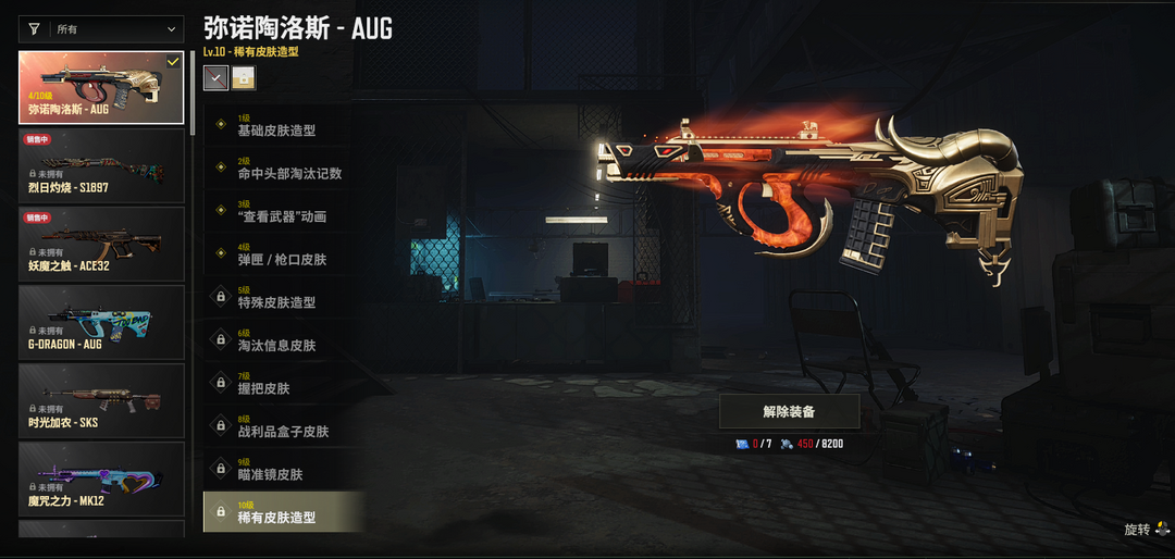 ④级弥勒斯AUG✅王牌登场M762✅灵魂枷锁AKM✅金色落叶M4✅猛虎猎手SLR✅金色落叶SKS✅幸