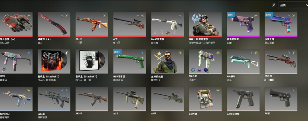 5e完美❤️伪红宝石蝴蝶刀❤️深红之网手套❤️鬼退治AWP❤️X射线AK❤️印花集