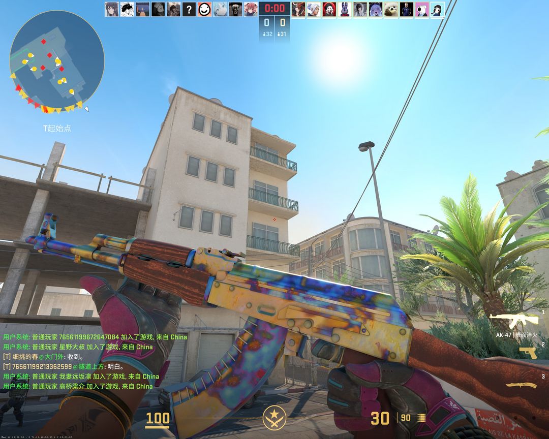 完美精英A+2347分⚡伽马蝴蝶刀⚡迈阿密手套⚡ak火神⚡awp克拉考⚡印花集全套