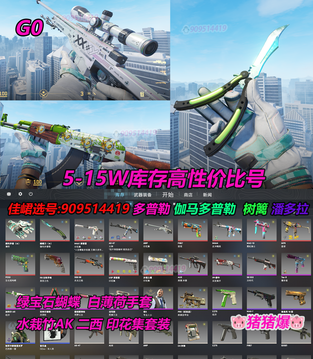 ✅完美绿色5E优先C+B树篱潘多拉龙狙永恒红宝石绿宝石蓝宝野荷咆哮火神雷击伽马多普勒蝴蝶刀爪子刀M9