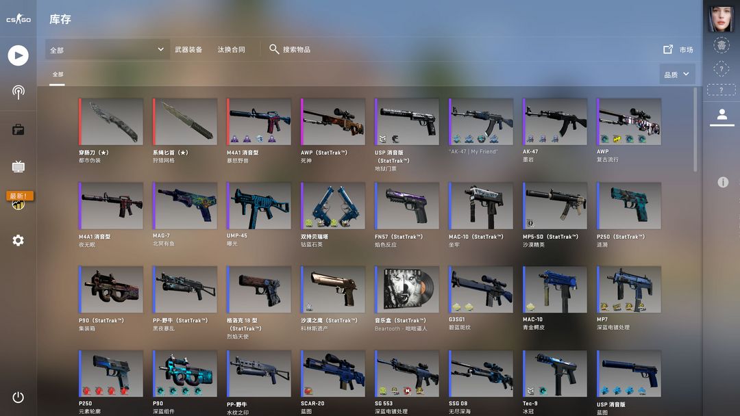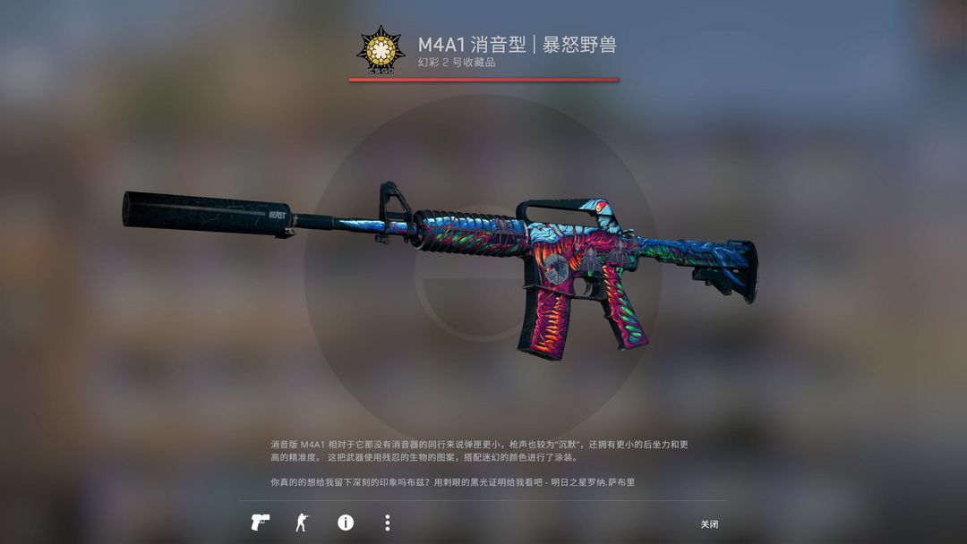 装备描述:可完美C (1310) ✅穿肠刀✅系绳匕首✅狩猎网格M4A1暴怒野兽✅大量皮肤