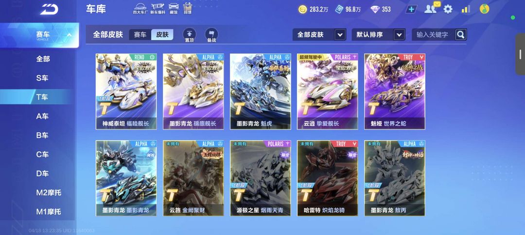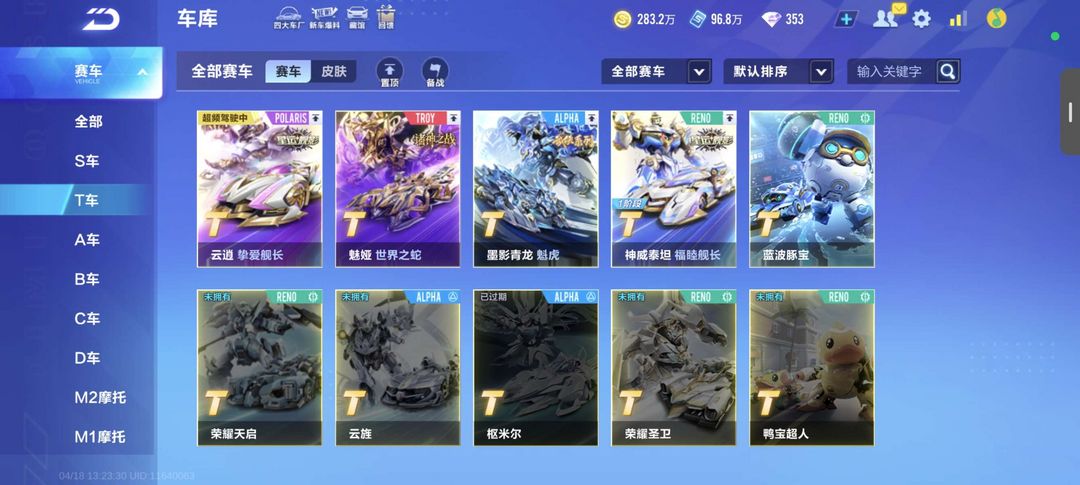 V12满级账号,4T机甲魅亚泰坦青龙云霄,多款永久A车,时装配饰齐全,无封禁