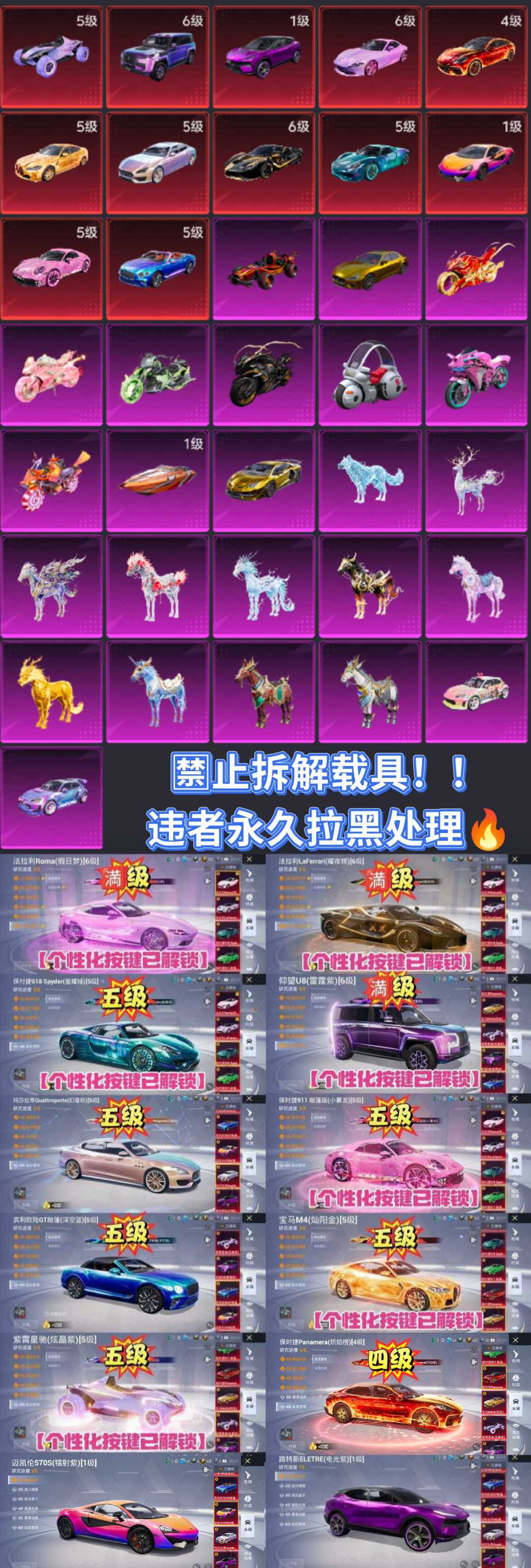 吉利ID福吨吨 ⑳套红装百变纱华安妮 老101贪吃小熊手雷 霜狼驭风满级法拉利56万热36车⑫升级车