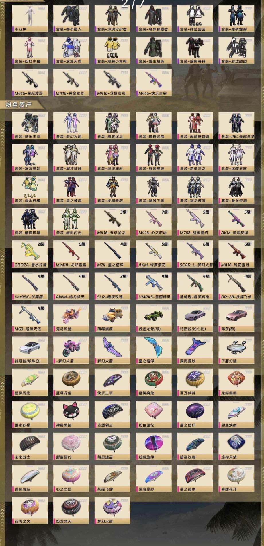 装备描述:木乃伊套装/套装-都市猎人/套装-沙漠守护者/套装-奇异狩猎者/套装-胖达圆圆/套装-暗夜魅影/套装-粉红小猪/套装-浪漫天命/套装-潮萌小黄鸭/套装-雪山精英/套装-暗影哥特/套装-胖达团团/M416-星际漫游/M416-黄金龙骨/M416-仓鼠灰灰/M416-快乐主宰,套装-快乐主宰/套装-梦幻火箭/套装-精灵迷巫/套装-蝶舞迷情/套装-麻辣鲜香锅/套装-PEL轰鸣竞梦者/套装-深海曼妙/套装-潮汐统领/套装-缤纷油彩/套装-放客神游/套装-新星烈龙套装-迷蝶贵族/套装-香水柠檬/套装-星之彼岸/套装-虎啸骄阳/套装-飓风飞鹰/套装-银龙傲海/套装-骨龙祭渊/套装-暗夜玫瑰/套装-碧影闪光五爪金龙心之恋语甜蜜誓约炫紫旋律香水柠檬龙虾霸霸星之信仰绿萝繁花梦幻火箭风花雪月鬼马风驰/萌喵橘座/合金龙骨(绿)/特斯拉Roadster(沁心粉)/玛莎拉蒂Ghibli(粉)/特斯拉Model3(珍珠白)/双人摩托-梦幻火箭