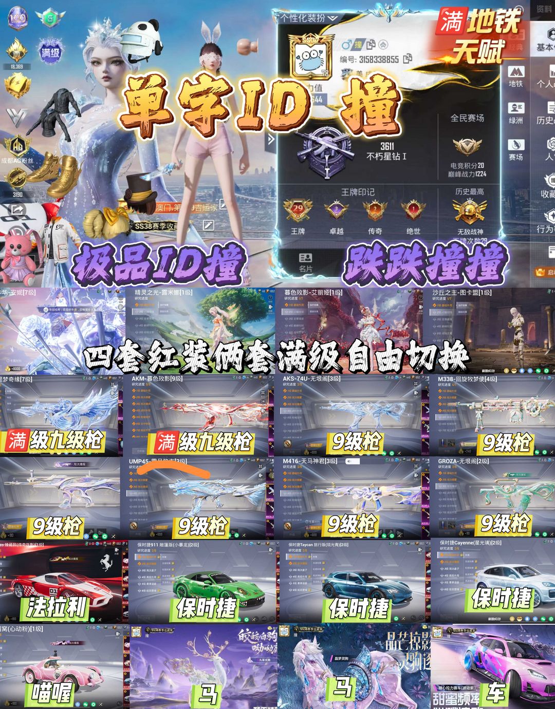 单字ID 撞/巡查/都市/金鞋/满级红装/百变/星梦奇缘/暮色/无限/狗砸/法拉利/保时捷/喵喔