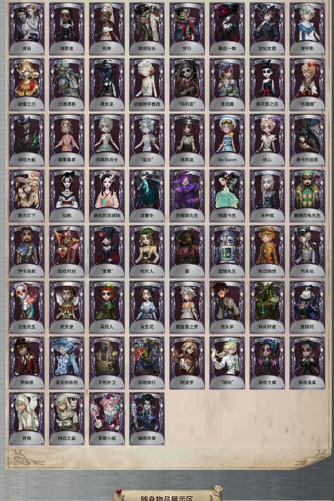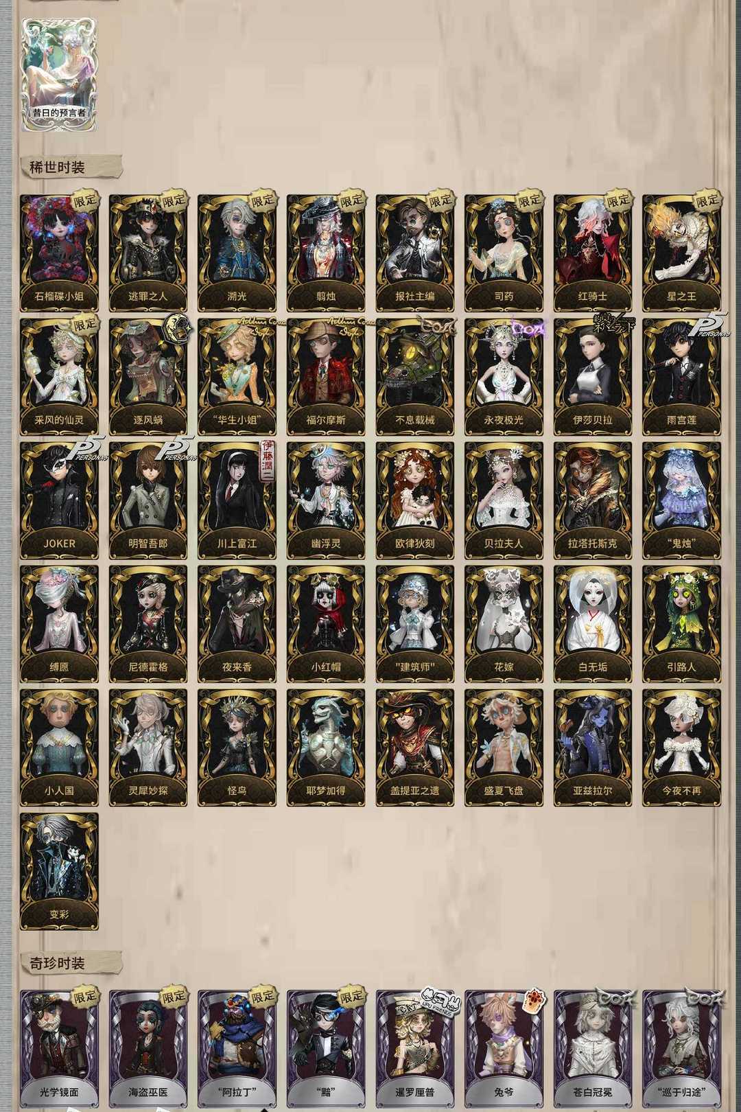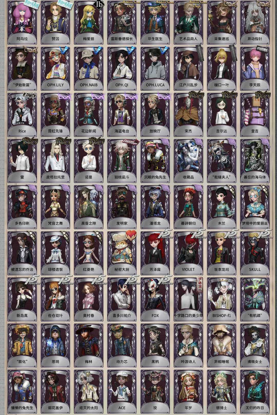 装备描述:昔日的预言者 司药 报社主编 翦烛 逃罪之人 溯光 石榴碟小姐 红骑士 采风的仙灵 星之王 川上富江 雨宫莲 JOKER 明智吾郎 伊莎贝拉 永夜极光 不息载械 福尔摩斯 “华生小姐” 逐风蜗 拉塔托斯克 怪鸟 小人国 夜来香 尼德霍格 小红帽 建筑师 花嫁 白无垢 引路人 今夜不再 亚兹拉尔 变彩 贝拉夫人 耶梦加得 盖提亚之遗 盛夏飞盘 幽浮灵 灵犀妙探 “鬼烛” 缚愿 欧律狄刻 片刻闲暇 “阿拉丁” 海盗巫医 光学镜面 “黯” 十字路口的美少年 奥村春 新岛真 佐仓双叶 坂本龙司 SKULL 喜多川祐介 FOX 芳泽霞 VIOLET 秘密大厨 琼楼遗恨 红菱艳 被遗忘的乔治 木兰 梦境中的爱丽丝 暮辞朝归 发明家 梵音之舞 沉眠的兔先生 晨昏之隙 “裁缝夫人” 潘塔龙 善忘的海马体 多色印刷 收藏品 狛枝凪斗 宋杰 吉尔达 皮塔拉托里 诺曼 雷 查吉 霓虹先锋 花边新闻 海盗电台 放映厅 Rice 李天辰 樋口一叶 江户川乱步 OPH.NAIB OPH.LUCA OPH.QI OPH.LILY 异动指针 “伊始新篇” 采集速巡 雷斯垂德探长 华生医生 艺术品商人 梅爱丽 赞因 阿乌拉 “巡于归途” 苍白冠冕 兔爷 暹罗厘普 不死护卫 炽天使 采药人 永生花 白兔先生 领头羊 郁金香之梦 林间狩者 梅林 动力芯 警醒的龟先生 伊卡洛斯 思明 绿纹大触 黑天鹅之羽 “苏珊娜” 诡笑症 Re-Swim 纸心 流离的月光 “巫云” 慵懒的兔先生 墨卡托投影 聚光灯下 仙鹤 融化的泪琥珀 波塞冬 衣帽架先生 桃面书生 冰中蝶 笼中之蝶 致命温柔 阿波罗 “琥珀” 月相 纯白之盐 禁闭院长 缄默者 祝祷 伊万 最后一舞 宝钻女爵 罗纳德 妄念的陈伤 ACE 狡 “宴舞” 校对人 霰 蓝釉先生 秋日随想 列车长 黑女巫 动植物学教授 “玛利亚” 沙滩漂移 狂欢时刻 清洁翼 湖中影 破魔之刃 银骑士 年岁 淋浴 无归的昨日 烟花盖伊 熄灭的太阳 删除符 黑鸦 吟游诗人 飞行家-异相睡眠 拂晓女士 BISHOP-f1 “有机磷” “膨化” 此地禁行 茶歇小姐 幽夜终章