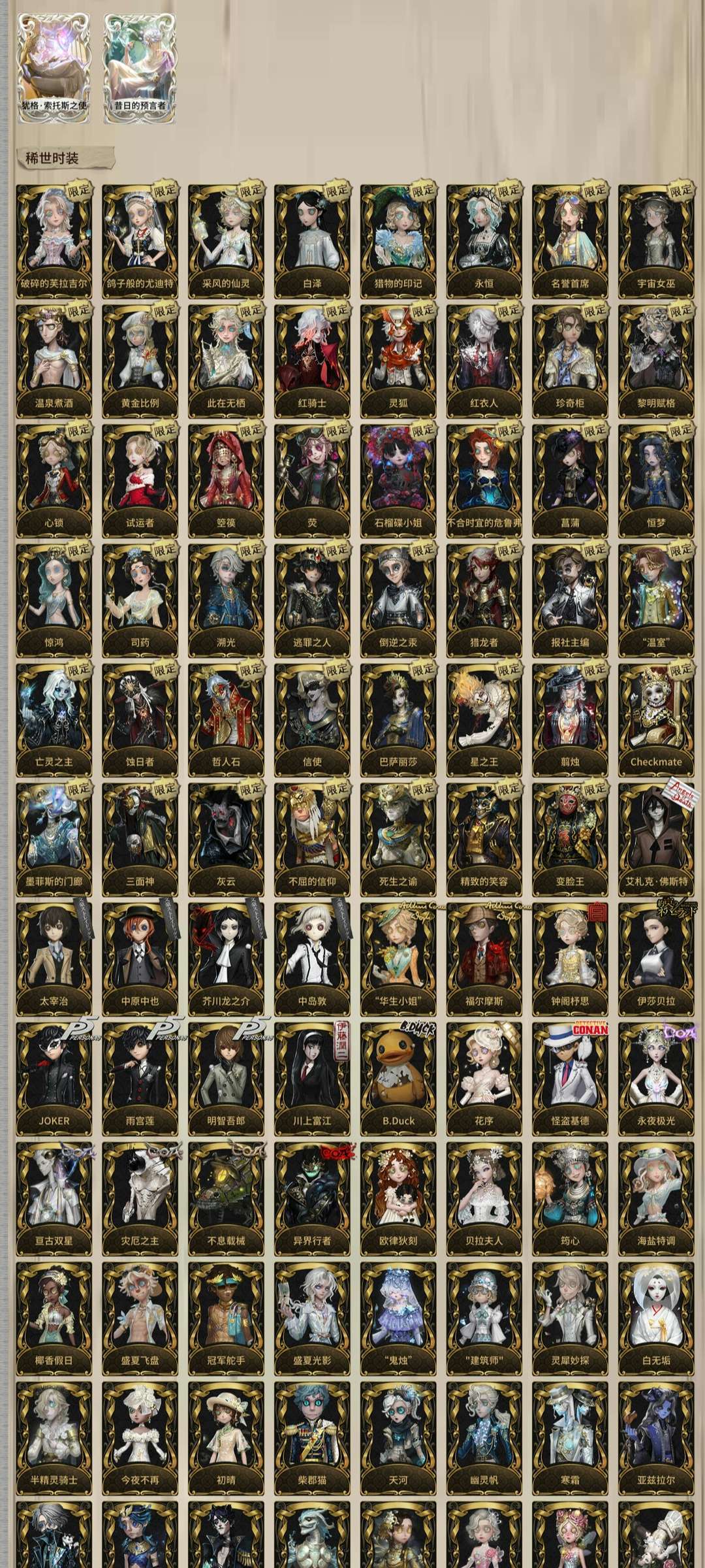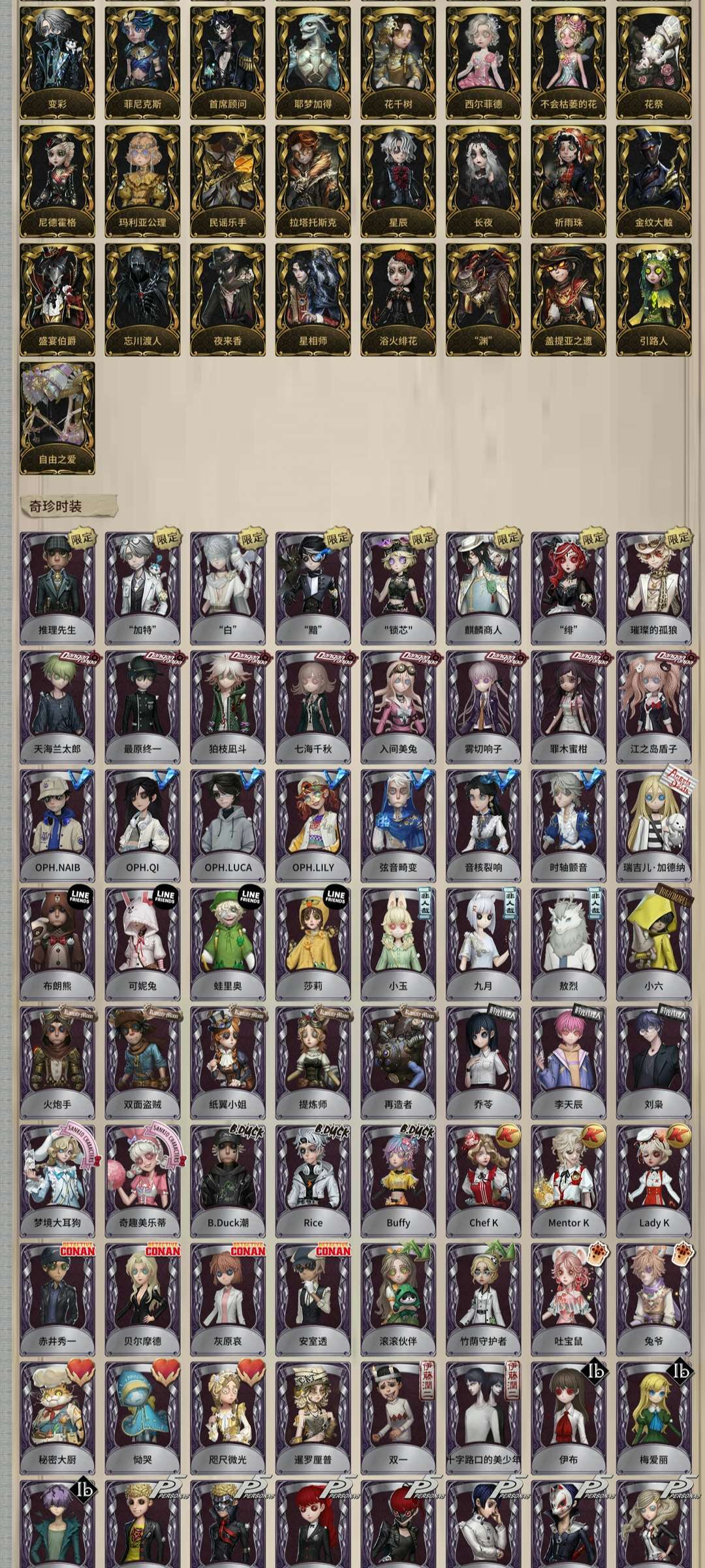 装备描述:8w共享8真理 167金=116金皮+56金挂 近期新补:林泉池馆、调香兔宝鼠礼包、杰克年限套、孤狼礼包、比格马里奥随从 佣兵3限 推理先知白黯绯麒麟锁芯加特 2虚妄 昔日的预言者 犹格丶索托斯之使 芙拉吉尔 鸽子 仙灵 白泽 列印 永恒 名誉首席 宇宙女巫 心锁 试运者 箜篌 荧 石榴碟 危鲁弗 菖蒲 恒梦 惊鸿 司药 红衣人 珍奇柜 此在无栖 黄金比例 黎明赋格 倒逆之汞 逃罪之人 红骑士 灵狐 猎龙者 溯光 报社主编 温室 死生之谕 亡灵之主 蚀日者 哲人石 星之王 巴萨丽莎 信使 checkmate 墨菲斯 文豪f4太中芥敦 p5JOKER 归宿:迷雾山庄 211b 魅影古堡 沉默宫殿 林泉池馆