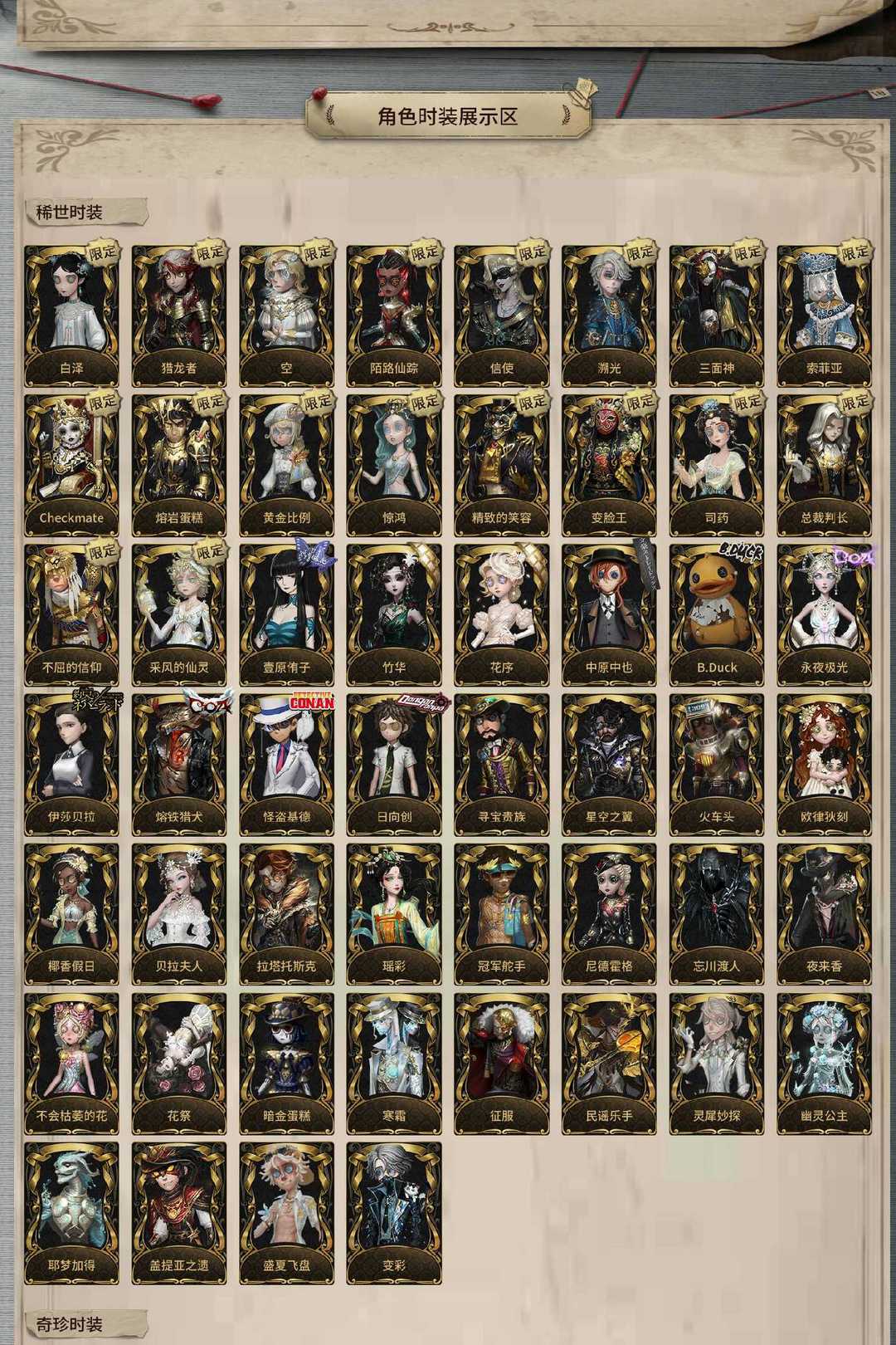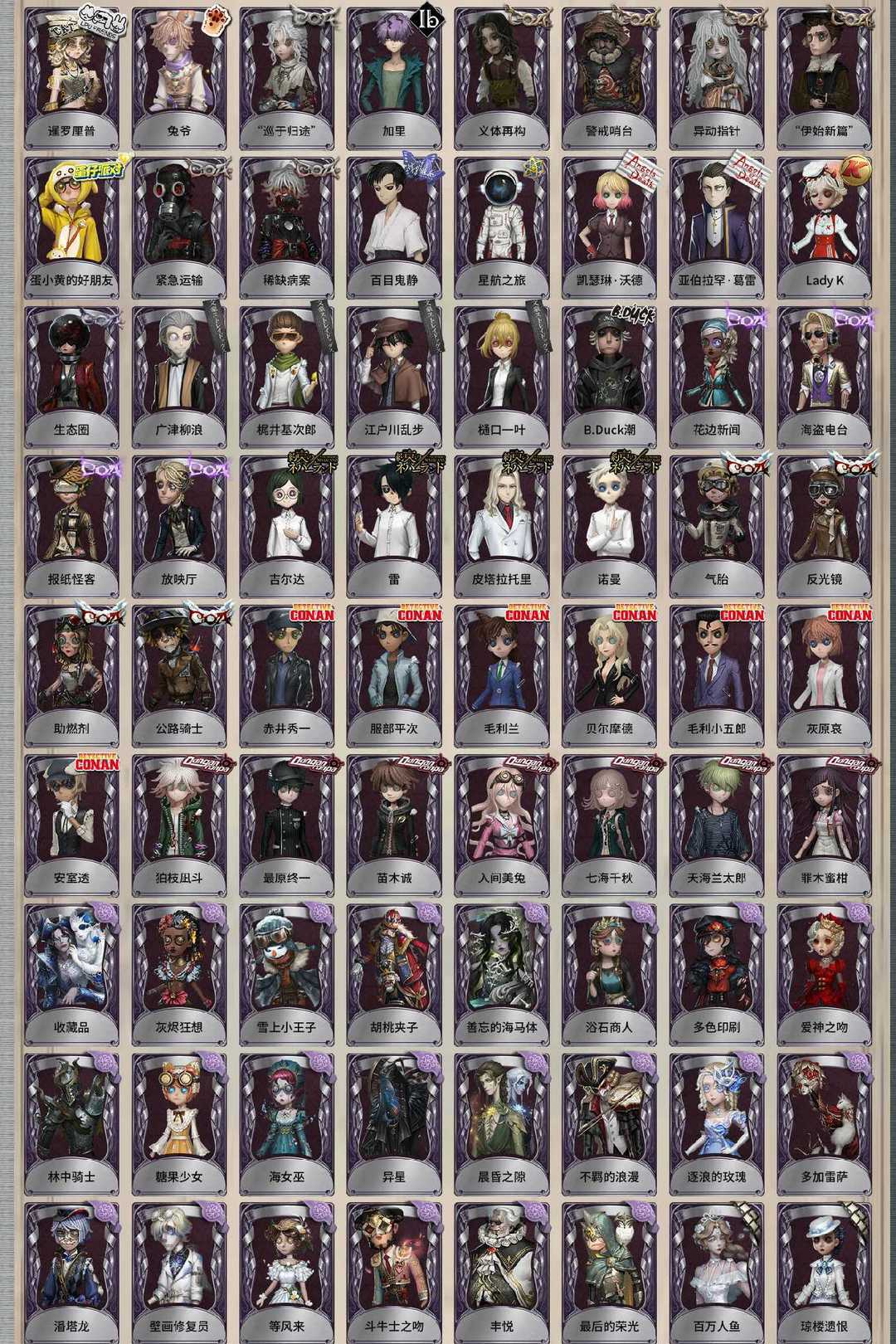 装备描述:精致的笑容 司药 惊鸿 总裁判长 不屈的信仰 信使 陌路仙踪 索菲亚 Checkmate 三面神 黄金比例 熔岩蛋糕 溯光 空 猎龙者 白泽 采风的仙灵 未至之人 日向创 怪盗基德 江户川柯南 工藤新一 熔铁猎犬 伊莎贝拉 永夜极光 B.Duck 中原中也 竹华 花序 壹原侑子 拉塔托斯克 幽灵公主 寻宝贵族 忘川渡人 夜来香 尼德霍格 不会枯萎的花 火车头 花祭 暗金蛋糕 寒霜 椰香假日 贝拉夫人 耶梦加得 盖提亚之遗 盛夏飞盘 灵犀妙探 民谣乐手 征服 冠军舵手 瑶彩 欧律狄刻 星空之翼 片刻闲暇 芳泽霞 恶之花 琼楼遗恨 罗生门 撒玛拉 哈姆雷特 百万人鱼 丰悦 斗牛士之吻 等风来 林中骑士 爱神之吻 糖果少女 海女巫 异星 最后的荣光 灰烬狂想 雪上小王子 逐浪的玫瑰 潘塔龙 多加雷萨 壁画修复员 不羁的浪漫 善忘的海马体 胡桃夹子 多色印刷 浴石商人 收藏品 苗木诚 罪木蜜柑 狛枝凪斗 七海千秋 天海兰太郎 入间美兔 最原终一 毛利小五郎 赤井秀一 毛利兰 服部平次 灰原哀 安室透 贝尔摩德 反光镜 公路骑士 气胎 助燃剂 吉尔达 皮塔拉托里 诺曼 雷 花边新闻 海盗电台 报纸怪客 放映厅 B.Duck潮 广津柳浪 樋口一叶 梶井基次郎 江户川乱步 生态圈 Lady K 葛雷 凯瑟琳·沃德 星航之旅 百目鬼静 稀缺病案 紧急运输 蛋小黄的好朋友 异动指针 “伊始新篇” 警戒哨台 义体再构 加里 焗炉 光天使 往昔 永生花 兰斯洛特 传信官 罗刹绯春 郁金香之梦 蒸汽朋克 镏金铜鹿 梅林 动力芯 爱丽丝 警醒的龟先生 宝藏猎人 寄生 白鹰之舞 绿纹大触 怀古 黑天鹅之羽 “苏珊娜” Re-Swim 纸心 流离的月光 蛮牛之力 阿瓦尔的战车 水球救生 光织守护 聚光灯下 海西遗风 书记官 紫孔雀 硫火 波塞冬 阴阳司公 桃面书生 梦之使者 “厄运” “朝圣者” 冰中蝶 致命温柔 冰上舞蹈 逆刃之鞭 蜡烛人 阿波罗 暮剑 安宁 月相 历战猎人 守钟人 入殓师-记忆之骑 禁闭院长 羽蛇 红龙夫人 缄默者 “向导” 伊万 宝钻女爵 骨笛 雀舌 迷途诗人 弄臣 狡 女高音 “宴舞” 夜光杯 西部大亨 蓝釉先生 “亡灵” 翡翠女王 荒野女巫 列车长 奶酪 电解 衔尾蛇 黑女巫 曼陀罗 “玛利亚” 动物女巫 长生 裁纸机 钨 藏 天使向导 破魔之刃 年岁 灵蛇 删除符 圣洁 黑鸦 吟游诗人 KNIGHT-c3 拂晓女士
