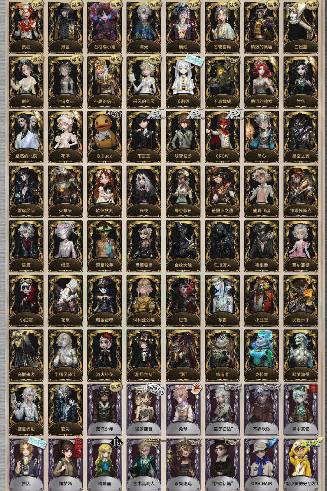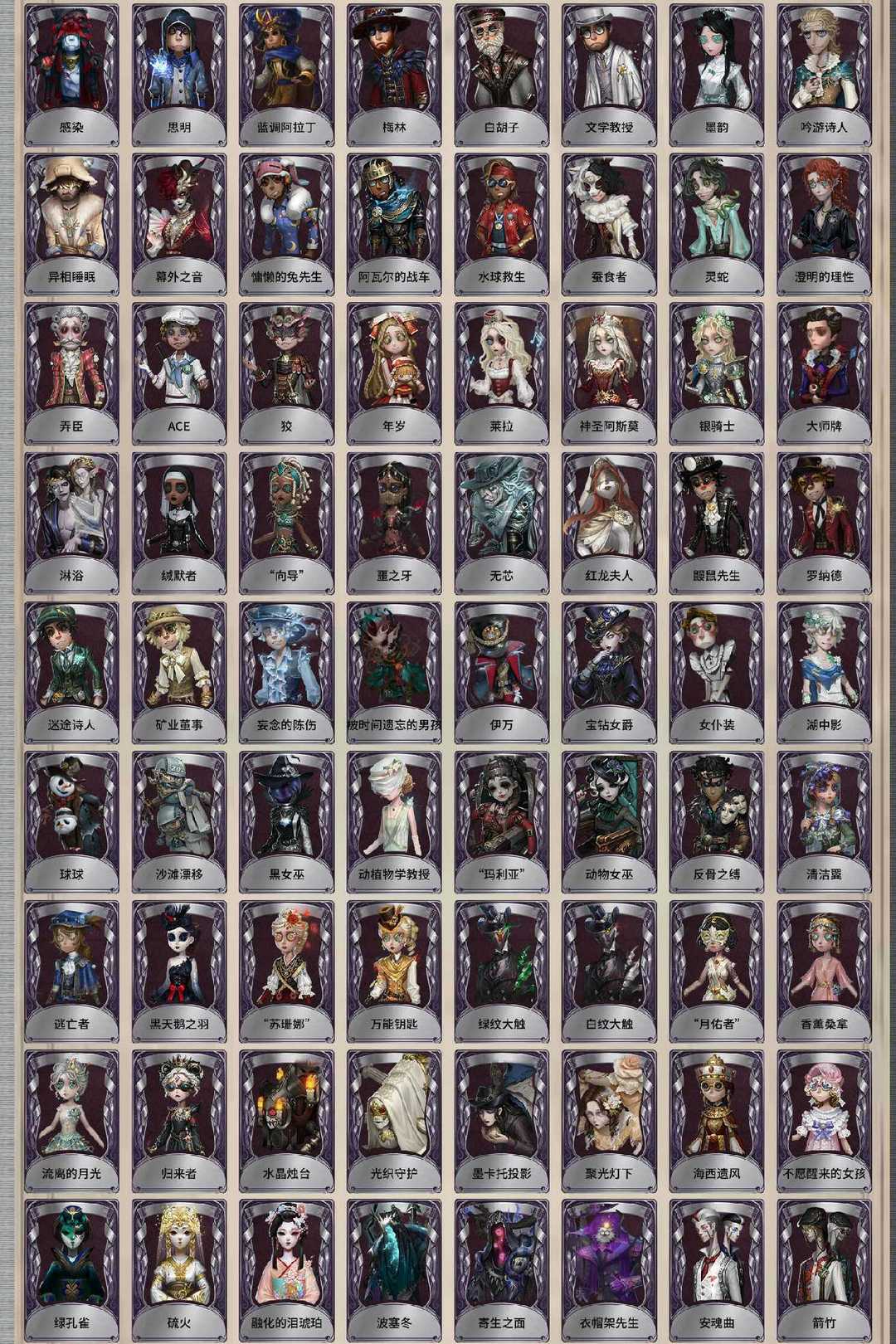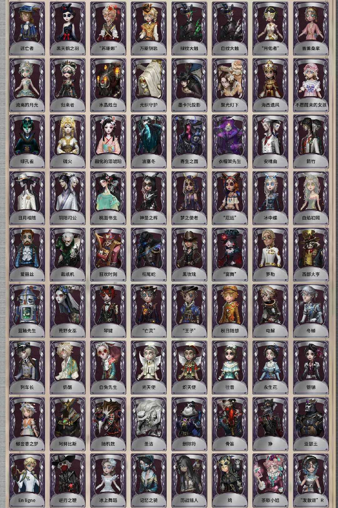装备描述:精致的笑容 司药 宇宙女巫 翦烛 名誉首席 不屈的信仰 白松露 溯光 石榴碟小姐 薄金 灵狐 采风的仙灵 未至之人 雨宫莲 明智吾郎 CROW B.Duck 竹华 粲然的北辰 花序 垂泪的神女 不息载械 芙莉莲 小丑皇 拉塔托斯克 浴火绯花 “剧场主持” 金纹大触 忘川渡人 夜来香 尼德霍格 小红帽 西尔菲德 火车头 花祭 暗金蛋糕 玛利亚公理 胧夜 寒霜 盛夏光影 变彩 椰香假日 耶梦加得 盖提亚之遗 盛夏飞盘 乌撒来客 半精灵骑士 民谣乐手 缚愿 冠军舵手 星辰 长夜 欧律狄刻 缔造者 克拉肯 “渊” 星空之翼 首席顾问 筠心 片刻闲暇 蒸汽少年 十字路口的美少年 奥村春 新岛真 佐仓双叶 NAVI 高卷杏 坂本龙司 SKULL 喜多川祐介 芳泽霞 秘密大厨 教鞭 嬉命人 残花泪 浮士德 独行者 丰悦 树形背景板 “未知射线”X 运筹 等风来 刻律涅之伤 爱神之吻 海女巫 晨昏之隙 《卡门》 猩红新娘 牛仔-船影 “裁缝夫人” 灰烬狂想 雪上小王子 窃梦行者 雪原猎人 逐浪的玫瑰 潘塔龙 多加雷萨 壁画修复员 善忘的海马体 胡桃夹子 多色印刷 收藏品 溃夜猎者 最原终一 冬 魔音回响 荒原之花 海盗电台 报纸怪客 放映厅 B.Duck潮 Buffy Rice 程小时&陆光 竹荫守护者 家园设计师 滚滚伙伴 江户川乱步 线控信号 炮弹飞船 葛雷 异想Hello Kitty 梦境大耳狗 悦乐酷洛米 奇趣美乐蒂 稀缺病案 菌丝研究 摩诺 蛋小黄的好朋友 OPH.NAIB “伊始新篇” 采集速巡 艺术品商人 梅爱丽 陶梦嫣 赞因 掌中篆记 “巡于归途” 不羁欢歌 兔爷 暹罗厘普 亚瑟王 女仆装 光天使 炽天使 往昔 永生花 银锑 白兔先生 郁金香之梦 阿努比斯 蓝调阿拉丁 梅林 白胡子 文学教授 爱丽丝 弹簧手 感染 思明 绿纹大触 白纹大触 黑天鹅之羽 “苏珊娜” 万能钥匙 归来者 “月佑者” 流离的月光 慵懒的兔先生 阿瓦尔的战车 水球救生 水晶烛台 光织守护 墨卡托投影 聚光灯下 海西遗风 不愿醒来的女孩 绿孔雀 硫火 融化的泪琥珀 波塞冬 寄生之面 衣帽架先生 安魂曲 箭竹 日月相随 阴阳司公 桃面书生 神圣之辉 梦之使者 “厄运” 冰中蝶 白焰初照 冰上舞蹈 逆刃之鞭 En ligne 历战猎人 鸩 入殓师-记忆之骑 无芯 红龙夫人 缄默者 “向导” 噩之牙 被时间遗忘的男孩 伊万 宝钻女爵 骨笛 狰 鼹鼠先生 罗纳德 迷途诗人 矿业董事 妄念的陈伤 弄臣 ACE 狡 罗勒 黑玫瑰 “宴舞” 西部大亨 蓝釉先生 琴键 “亡灵” “王子” 秋日随想 荒野女巫 列车长 奶酪 电解 冬蝉 衔尾蛇 黑女巫 动植物学教授 “玛利亚” 动物女巫 球球 沙滩漂移 逃亡者 裁纸机 狂欢时刻 反骨之缚 清洁翼 湖中影 莱拉 神圣阿斯莫 银骑士 年岁 淋浴 大师牌 澄明的理性 蚕食者 灵蛇 删除符 随机数 圣洁 墨韵 吟游诗人 飞行家-异相睡眠 幕外之音 BISHOP-f1 辉锑矿 斐乐蒙的圣坛 “有机磷” 茶歇小姐 “发散谱”R