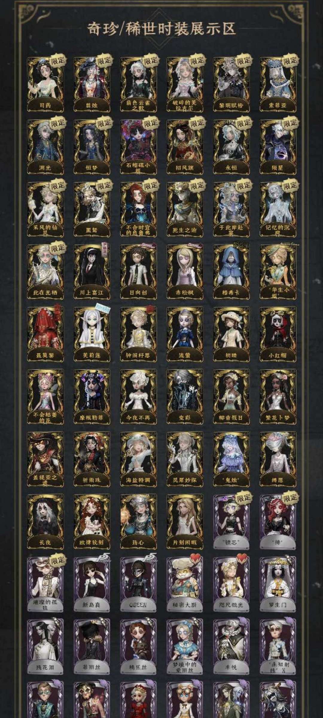 装备描述:· 金皮总数:46件 · 带标金皮:28件(其中限定标20件,品质极高) · 奇珍时装:全热门角色基本覆盖 · 共享功能:✅ 已开,租客可带朋友一起玩 【核心限定金皮列表】 招风旗 · 日向创 · 赤松枫 · 索菲亚 · 永恒 · 溯光 · 恒梦 · 陨星 · 采风的仙灵 · 黑鹫 · 不合时宜的危鲁弗 · 司药 · 翡色云雀之歌 · 破碎的芙拉吉尔 · 黎明赋格 · 剪烛 · 死生之谕 · 此在无栖 · 石榴碟小姐 · 于此岸赴宴 等共20件 【三大典藏归宿】 ·