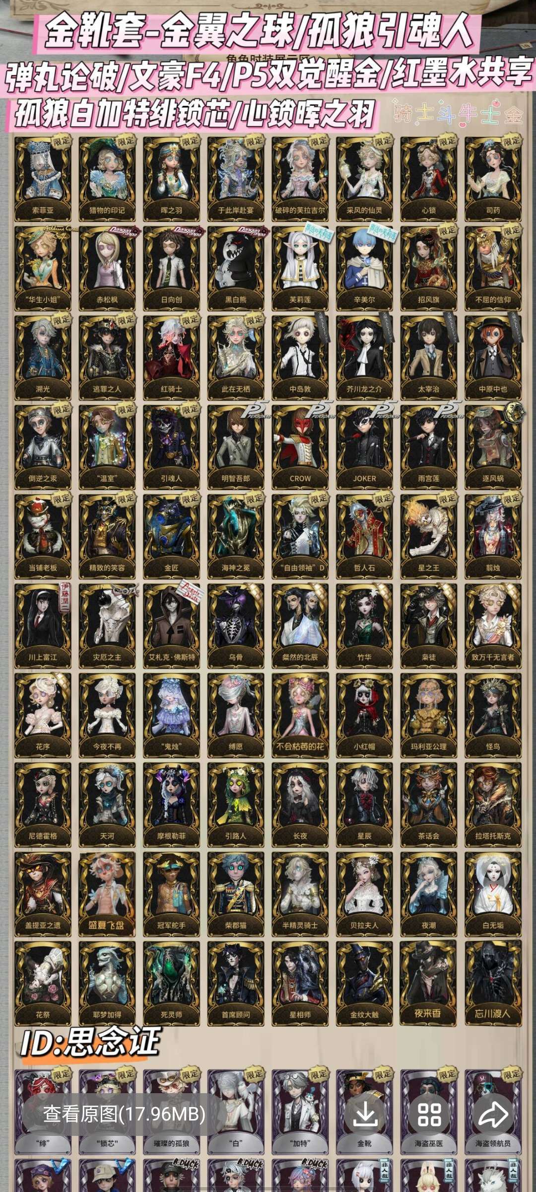 装备描述:勘探真理之下,璀璨的孤狼 -偷玩/骗人毁号一律拉黑 如果发现密码错误,回来申诉 再次上架说明已经更新了密码 白加特绯✨心锁/晖之羽/索菲亚/法罗金仙灵/红骑士/弹丸满配-文豪F4+P5双觉醒金/扎克-海神-星之王-哲人石❗金靴套-金翼之球❗山庄/红墨水共享 恶意撤单/禁言,拉黑 有时候密码忘记更新,撤单后再次上架 说明已经更新密码了 开挂封号必报警处理 开挂封号损失 查ip 报警处理禁止使用外挂,此帐号非账号问题不可撤单! 官方账号密码直接登陆,禁止游戏内刷喇叭说卖号骗人,抓一次直接报警, 禁止开挂,本账号经过网络财产备案,一直发现直接报警处理 ✨恶意投诉秒顶改密,直接拉黑,永久不让租 零点后尽量别单租