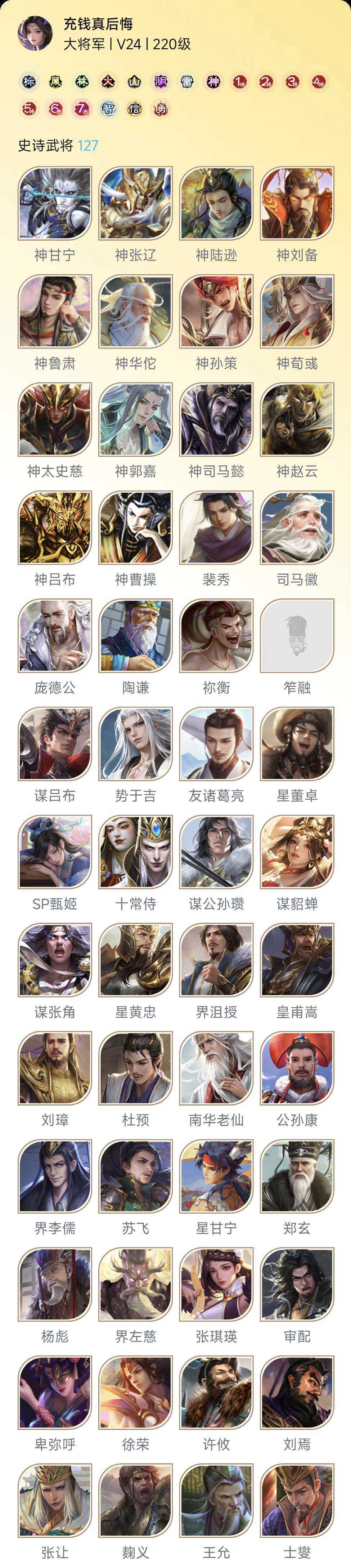 限制: 撤单率<20%才可租用此帐号装备描述: ◆安卓苹果都可登录 ,一万豆建议打斗地主巅峰赛 ◆郑重承诺:出租时间到时会改密,但不会秒顶号、会延迟10分钟顶号!如果有提前顶号、注意查看号子出租状态!下架代表别的平台有人租! 禁止逃跑!逃跑导致封号立马永久拉黑!官方号,顶级一等127黑金卡牌史诗大将军,新出张奋动皮,四星新出势国渊/四星新笮融/新动神鲁肃/双真动五星鲍三娘/四星动陆郁生/至臻谋孙策/四星势魏延/四新谋吕布/新动神甘/四星势于吉/至臻十常侍/四星友诸葛/势太史慈、董昭/四星sp甄姬/动谋孙尚香/四星谋陆逊/四星曹髦/四星动谋黄忠/四星谋曹丕/四星动神太/四星界沮授/四星司马昭、四星张奋、四星动谋关羽、四星动谋曹仁/四星双动谋诸葛/四星动文鸯、动徐荣/四星谋黄盖/动黄埔嵩/四星双动孙寒华、四星动谋貂蝉/双动四星杨彪、双动神荀彧、至臻动神郭嘉、动许攸、动羊徽瑜,动神曹。 天宫精品有新出sp曹操,四星势张燕/四星吴珂/杨弘/司马孚/玄毌丘俭/鲍信/谋甄姬/动阎象/木鹿大王/三动谋黄月英/动谋张辽/谋诸葛瑾/谋法正/动谋贾诩/杨奉等 【千万别逃跑+拖时间/逃跑和拖时间提醒直接进入黑名单】此账号质量高、可玩性强,具体见