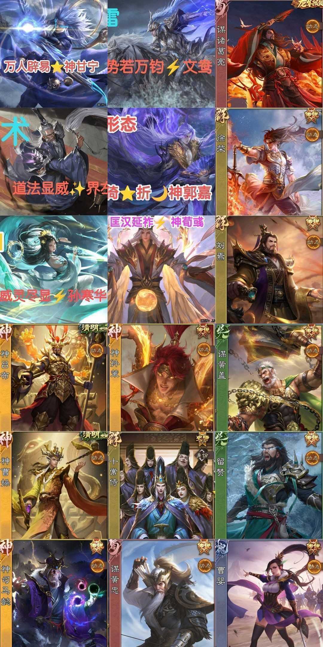 ♏全神新司马昭♒8巨头大将军♌曹髦谋曹丕♉新双形态文鸯♍双形态神郭嘉♐回廊谋关羽♉回廊神荀彧