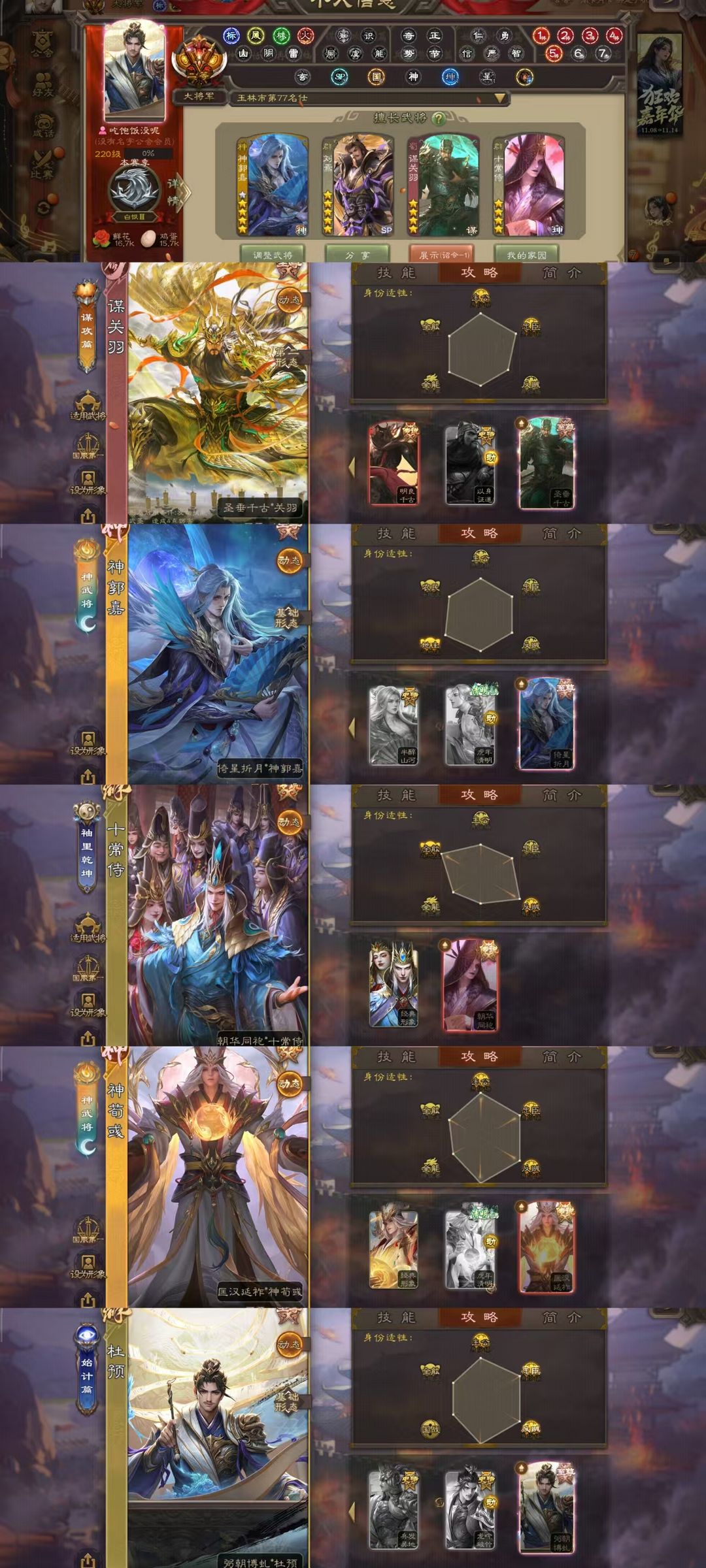 七至尊大将军☀至尊谋关羽☀回廊十常侍☀双形态神郭嘉杜预文鸯司马昭☀回廊神荀彧神司马懿势陆郁生