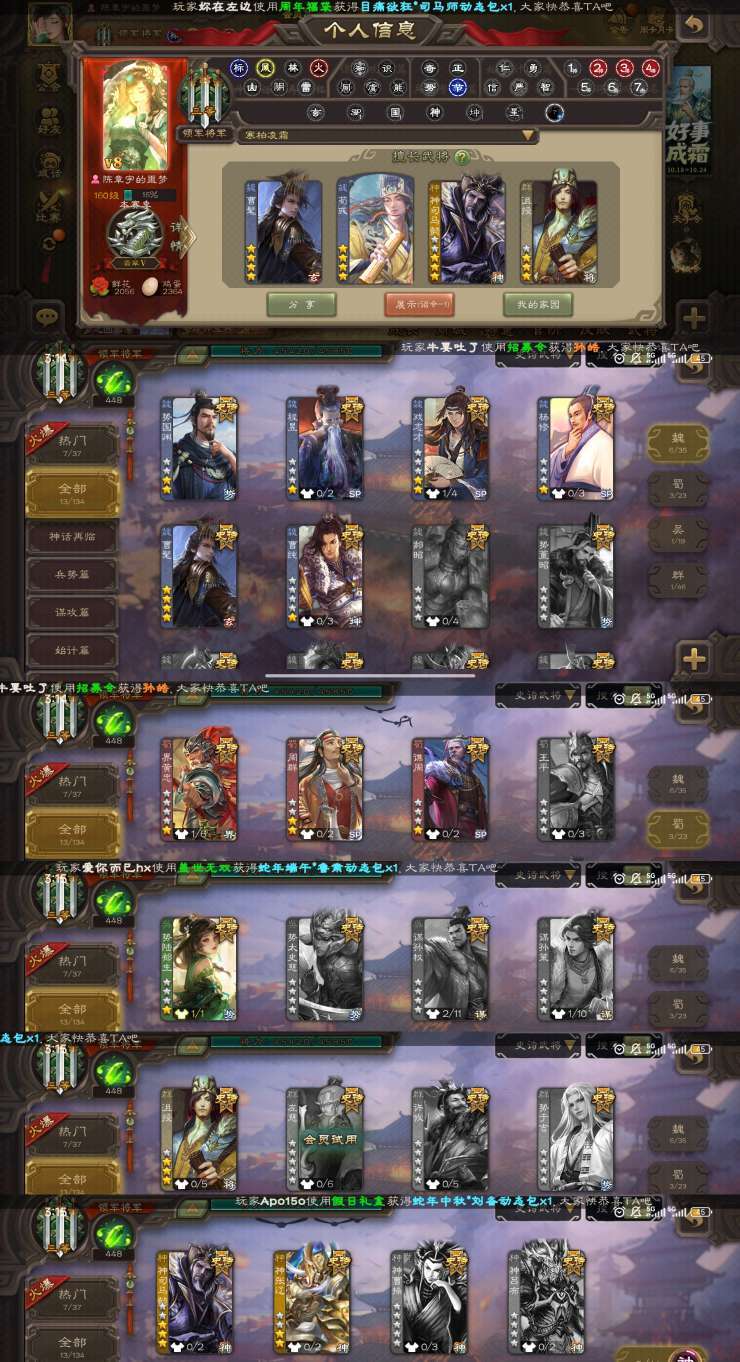 限制: 撤单率<15%才可租用此帐号装备描述:【有点将卡】势国渊曹髦神司马懿动势陆郁生戏子等