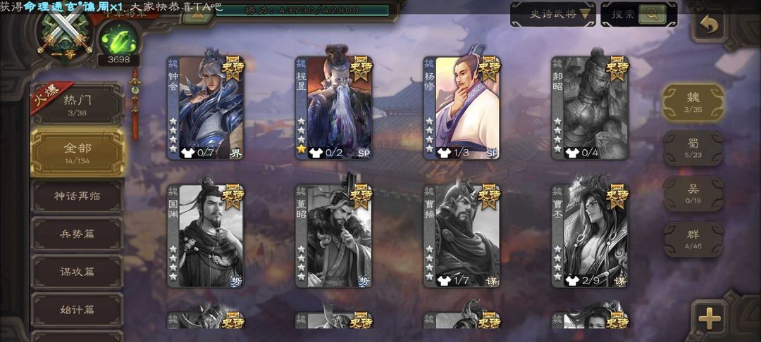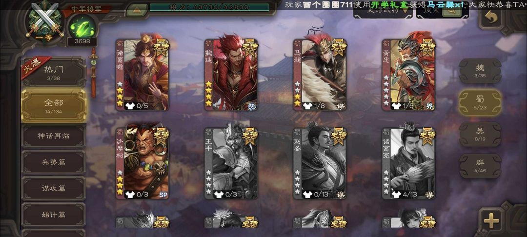 有卡/炸鱼专享/玉龙势魏延/玉龙裴秀/界终会/沙摩柯/诸葛瞻