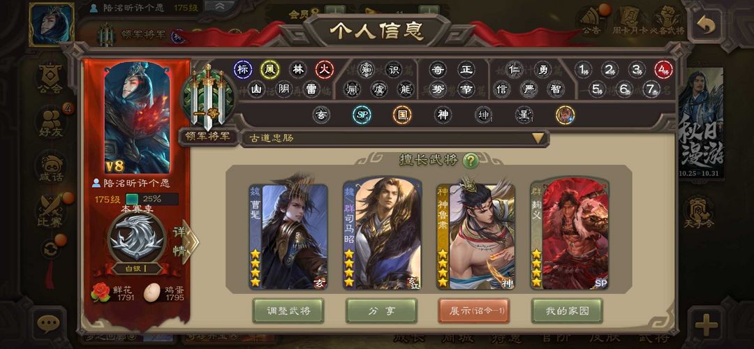 限制: 租号1次及以上 |装备描述:V8/曹髦/司马昭带动皮/金皮至高天神鲁肃/白马带动/谋黄月英/收藏/炸鱼号