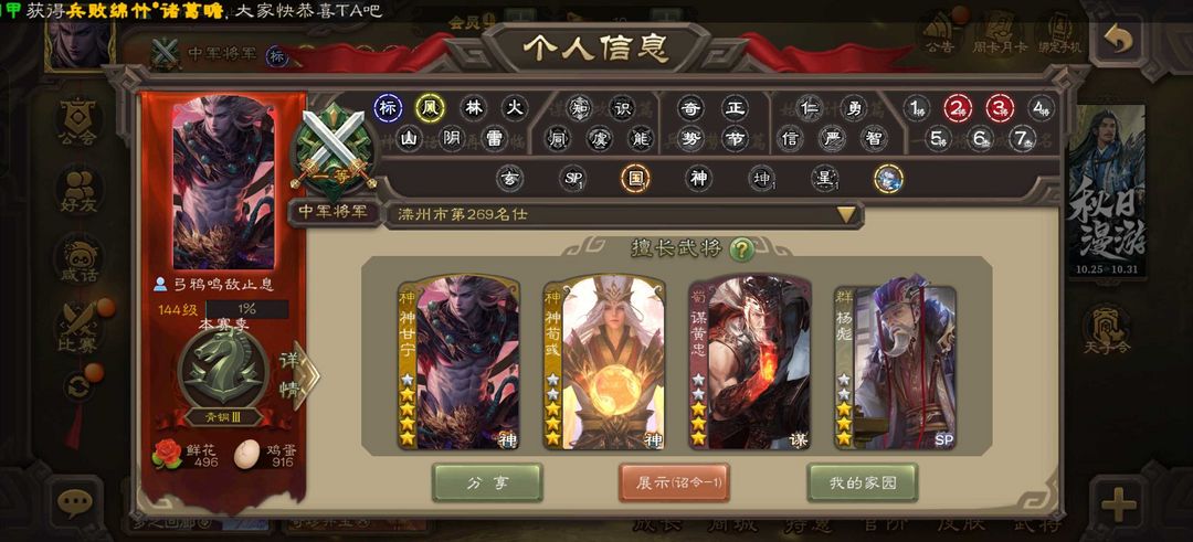 《日租特惠》双权一 回廊神甘宁/回廊神荀彧/回廊谋黄忠/杨彪/大宝等炸鱼号