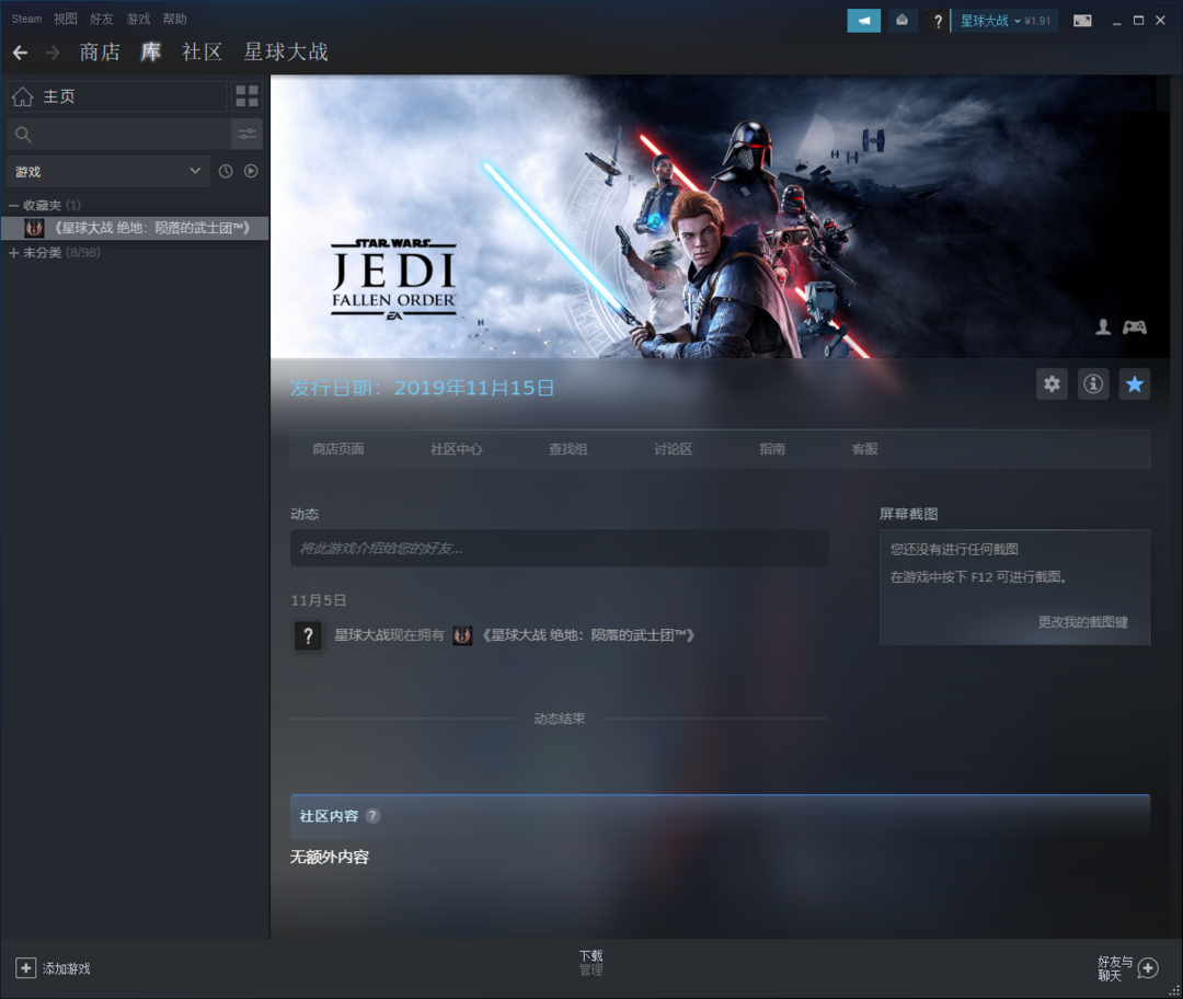 游戏区服:星球大战 绝地:陨落的武士团™-STEAM-STEAM